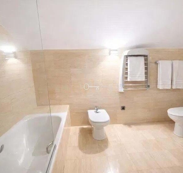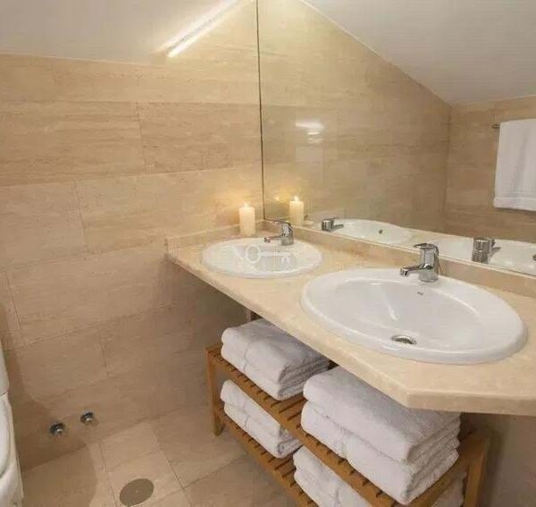 On the first floor, there is a large double bedroom with a walk-in closet and sitting area, along with a full bathroom with a shower cabin, all enjoying spectacular views. There is also another double bedroom, currently used as an office, with built-in wardrobes and its own en-suite bathroom.