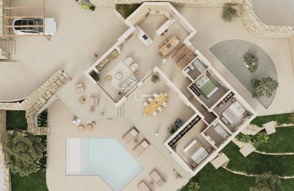 – 4 przestronne sypialnie, wszystkie z bezpośrednim dostępem do prywatnych tarasów, zaprojektowane tak, aby jak najlepiej wykorzystać widoki i delikatną morską bryzę.