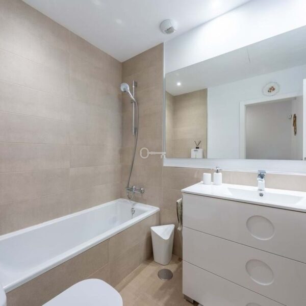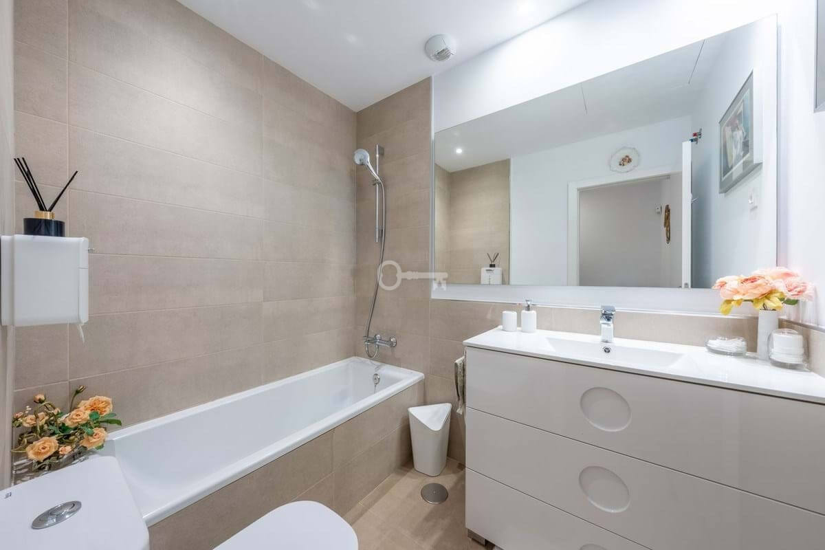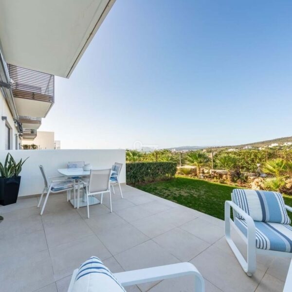 The property, southwest-facing, enjoys natural light throughout the day as well as open views of the sea, the mountains, and Gibraltar. It features a 20 m² terrace and a 29.96 m² private garden that extend the outdoor living space, in addition to a balcony and well-defined living and dining areas. The kitchen is fully equipped and includes a separate utility/laundry room.