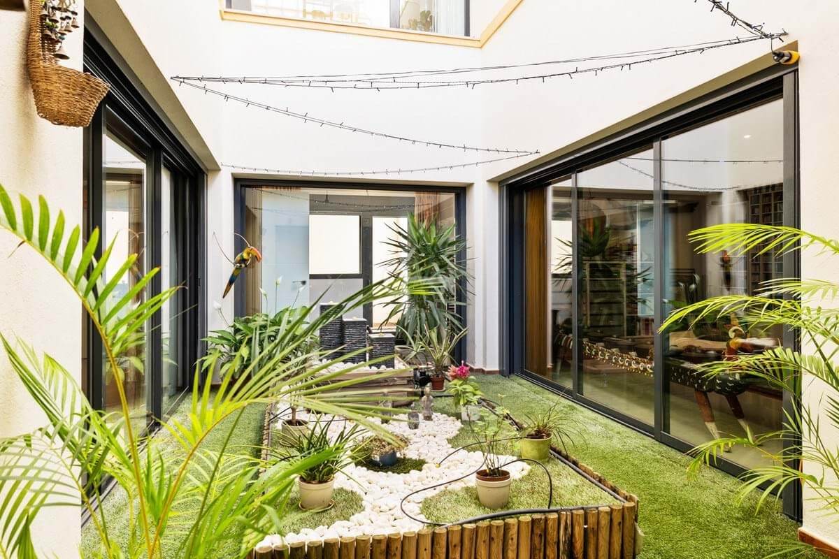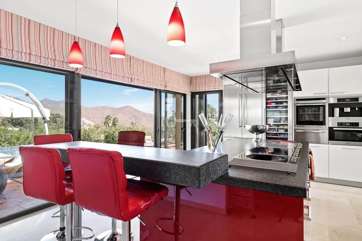 Idealnie położony w La Mairena (Monte Elviria), z działką o powierzchni 2043 m2 z całkowitą prywatnością! Główne piętro (w salonie) jest wzmocnione bardzo wysokimi sufitami o dwóch wysokościach i rozciąga się na około 561 m2 wewnątrz + tarasy!