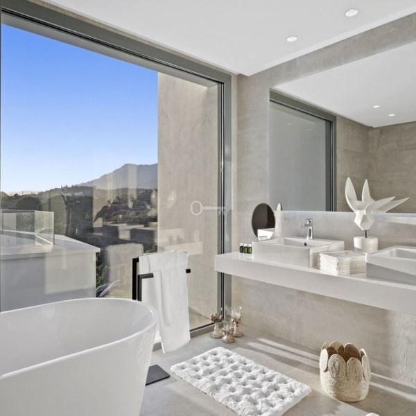 Wchodzisz do willi na 1 piętrze, gdzie znajdziesz 3 sypialnie każdy skierowany na południe / zachód z pięknym widokiem na Golf, morze i góry. Master sypialnia jest wielki rozmiar z cudownym en-suite łazienka z Walk-in prysznicem nowoczesnej wanny, podwójny zlew, WC i bidet. Dużo wyposażone szafy w całej nieruchomości i ogrzewanie podłogowe indywidualnie sterowane.