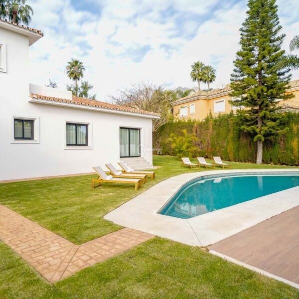 Welcome to this spectacular villa for sale in Marbella, located in a quiet residential area just a short distance from the La Cañada shopping center. This luxurious property has been completely renovated and furnished with a modern and elegant style, ensuring an exceptional living experience for its new owners.