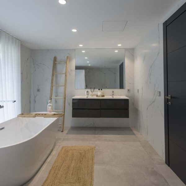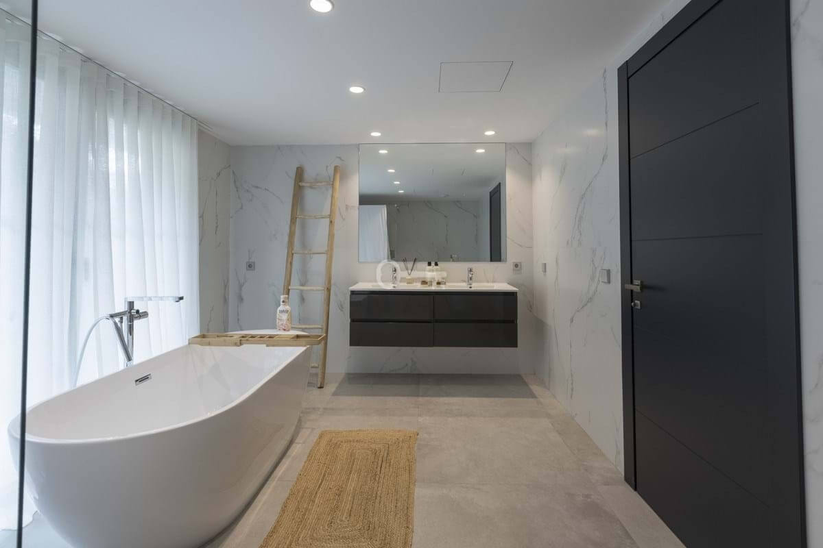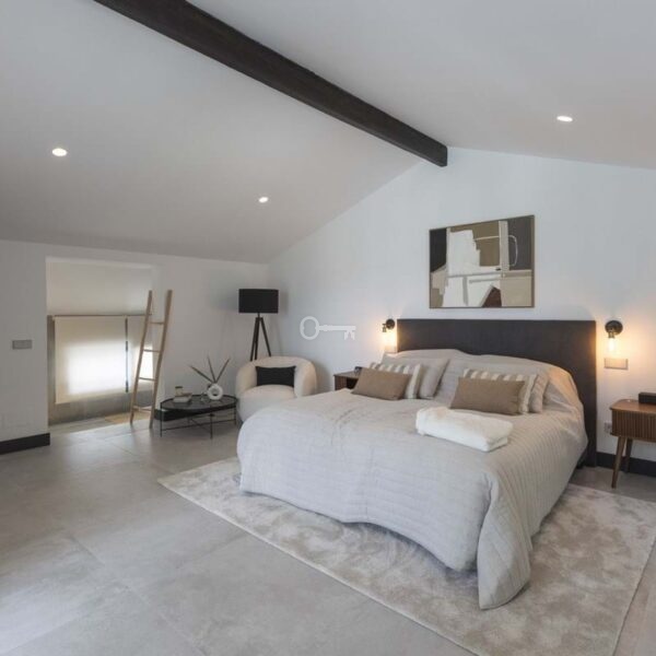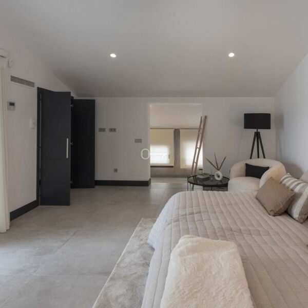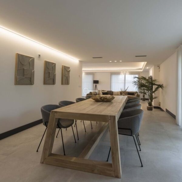 The villa offers an exceptional outdoor area, including a tennis court and a large garden. There is also a guest toilet and changing roomideal for enjoying the outdoor lifestyle. Next to the stunning 14-meter-long, 2.5-meter-deep pool, you’ll find an elegant outdoor dining area, perfect for entertaining.