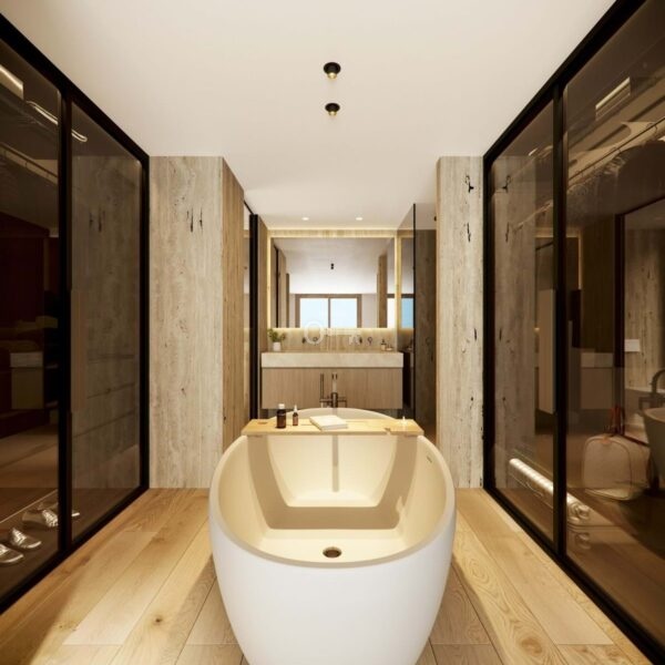 Master suites feature spa-inspired bathrooms and dressing areas, while high-quality finishes, private gyms and energy-efficient features such as solar panels and EV charging ensure modern comfort.