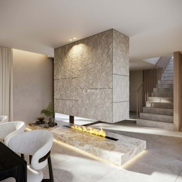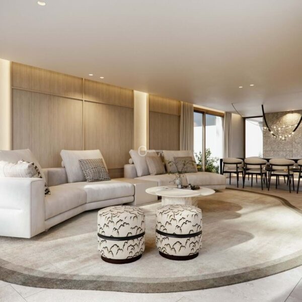 Each villa is thoughtfully designed with elegant white façades, natural stone details and expansive windows that flood the interiors with light. Open-plan living areas flow seamlessly onto generous terraces, landscaped gardens and private infinity pools, creating the perfect indoor-outdoor lifestyle.