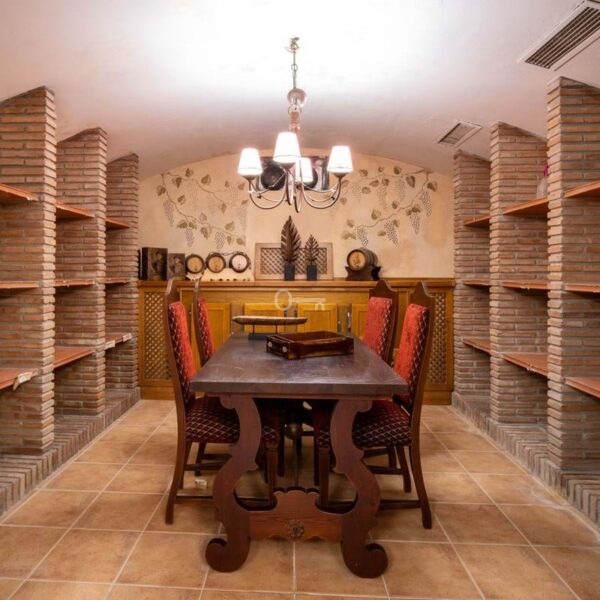 The villa is surrounded by a meticulously manicured garden that enhances its atmosphere, complete with a private swimming pool designed for year-round enjoyment. Expansive terraces cater to alfresco dining and relaxation, seamlessly blending indoor and outdoor living. At the heart of the property lies a captivating courtyard adorned with charming décor and a fountain, adding to the villa’s timeless appeal.