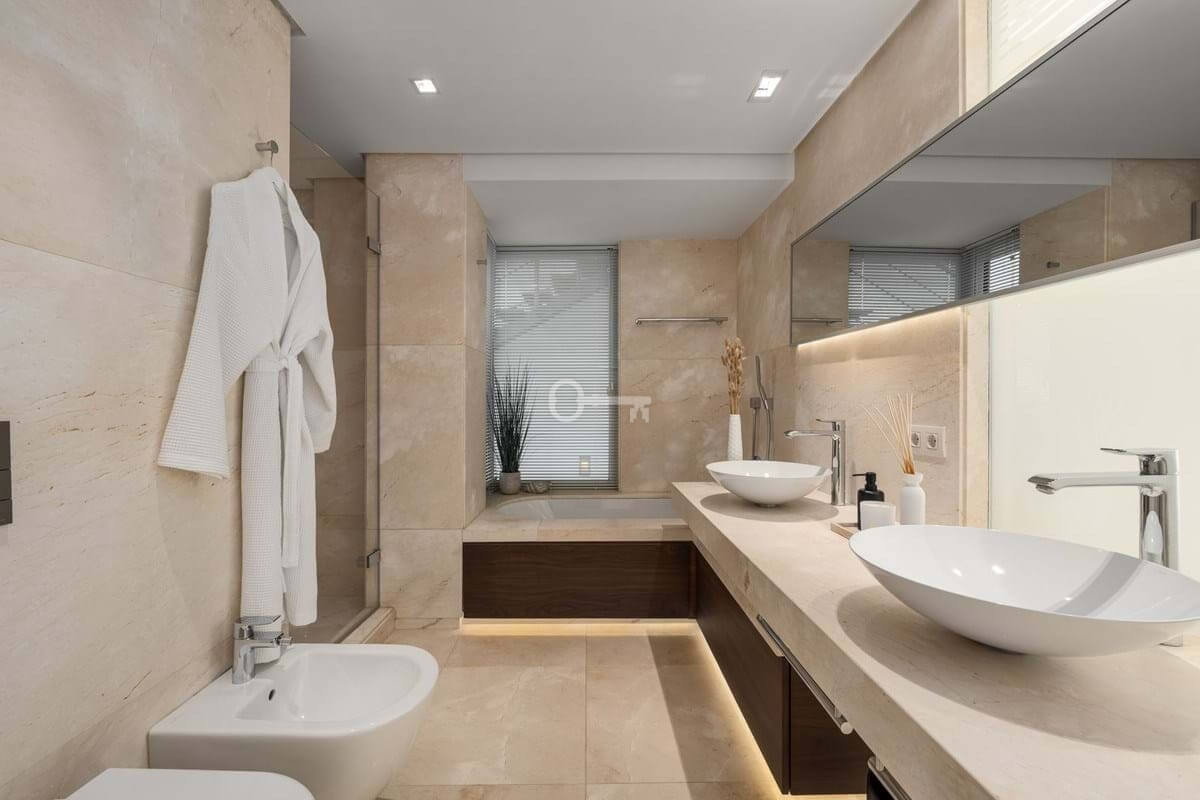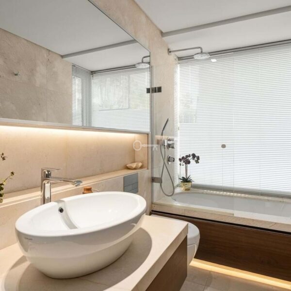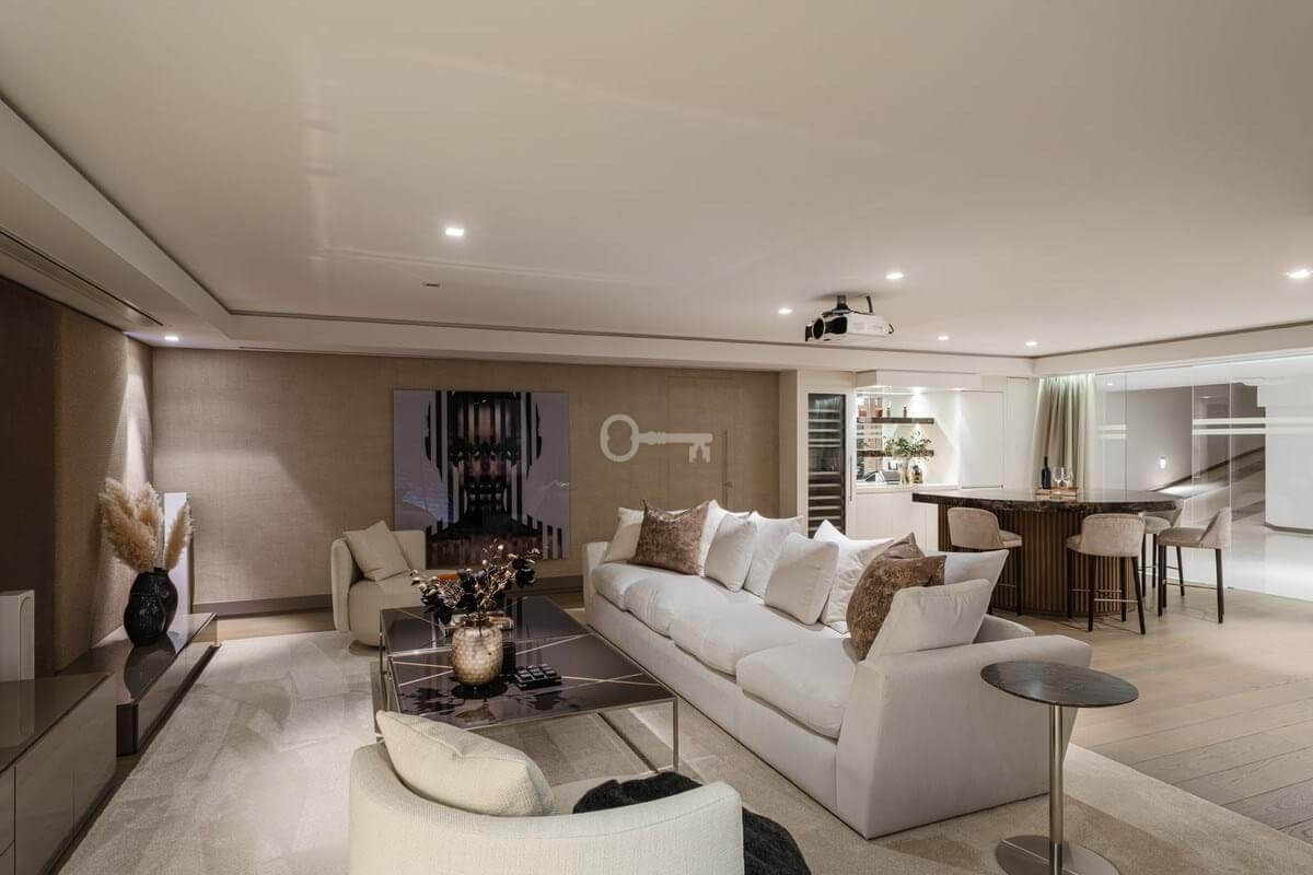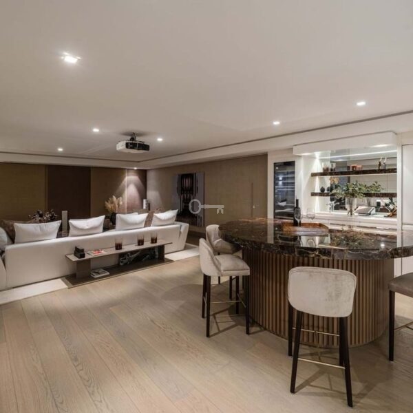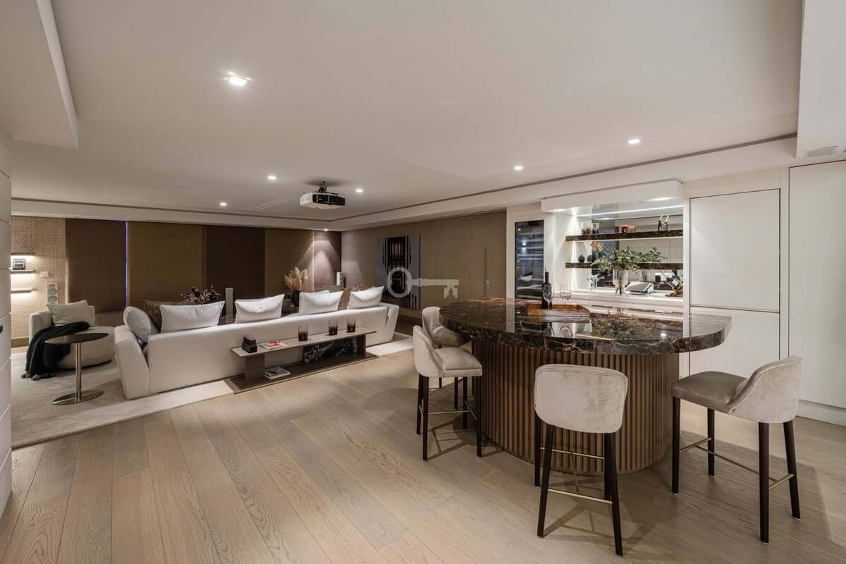 This is a house for people who value flow. The lower level handles leisure properly entertainment room with bar, cinema area with projector, gym and sauna so the living floors remain clean and composed. Upstairs, the kitchen, dining and living space opens directly onto the terrace, where the pool meets the line of the sea rather than competing with it. Light, proportion and modern design do the heavy lifting; nothing here asks for attention, yet everything earns it.