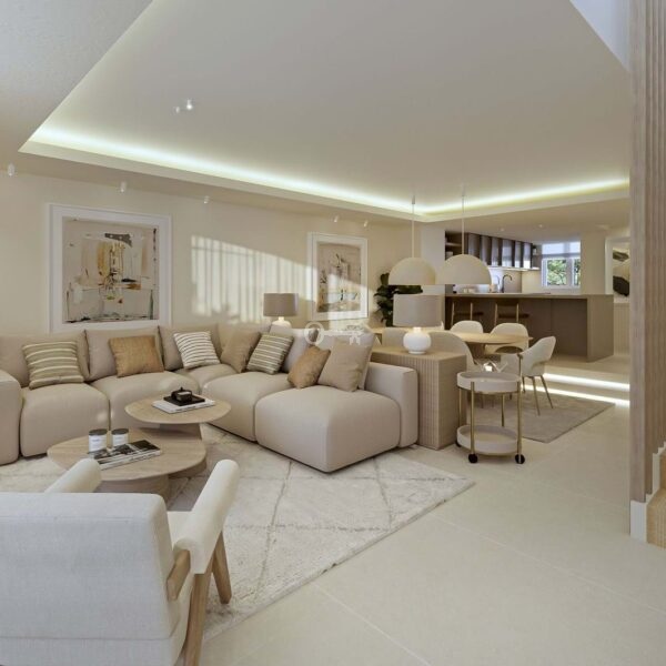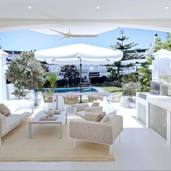 Located in the prestigious community of Arco Iris on Marbellas Golden Mile, this exceptional corner townhouse offers a rare opportunity to acquire a fully renovated turnkey residence in one of Marbellas most desirable locations. The property features five en-suite bedrooms plus an additional guest toilet, within a built area of 303 m², combining refined design, privacy and prime positioning.