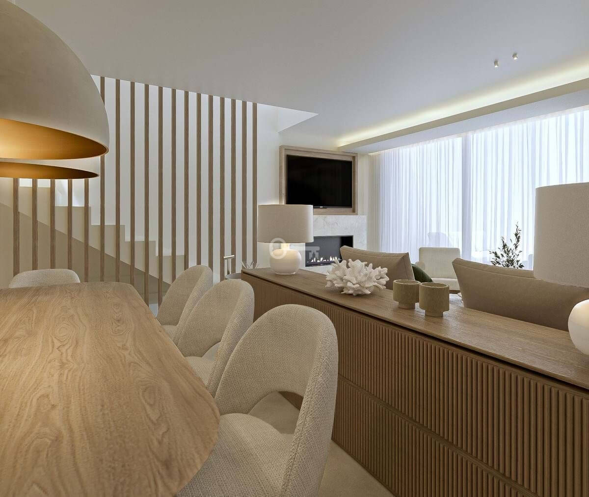 The home has been completely refurbished to an uncompromising standard, featuring a bespoke open-plan Santos kitchen, a custom outdoor kitchen and a dedicated wine cellar. The interiors are fully furnished with custom-made furniture throughout, including lacquered fitted wardrobes with integrated LED lighting, as well as beds with built-in storage and premium 35 cm mattresses with toppers.