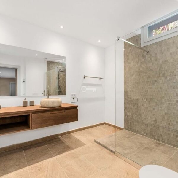 The outdoor layout completes the homes contemporary architecture and offers a peaceful retreat just minutes from the sea.