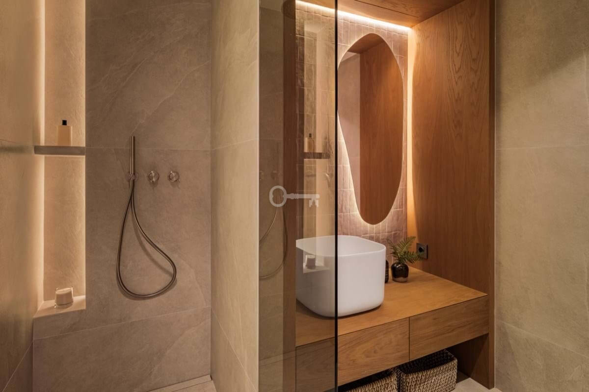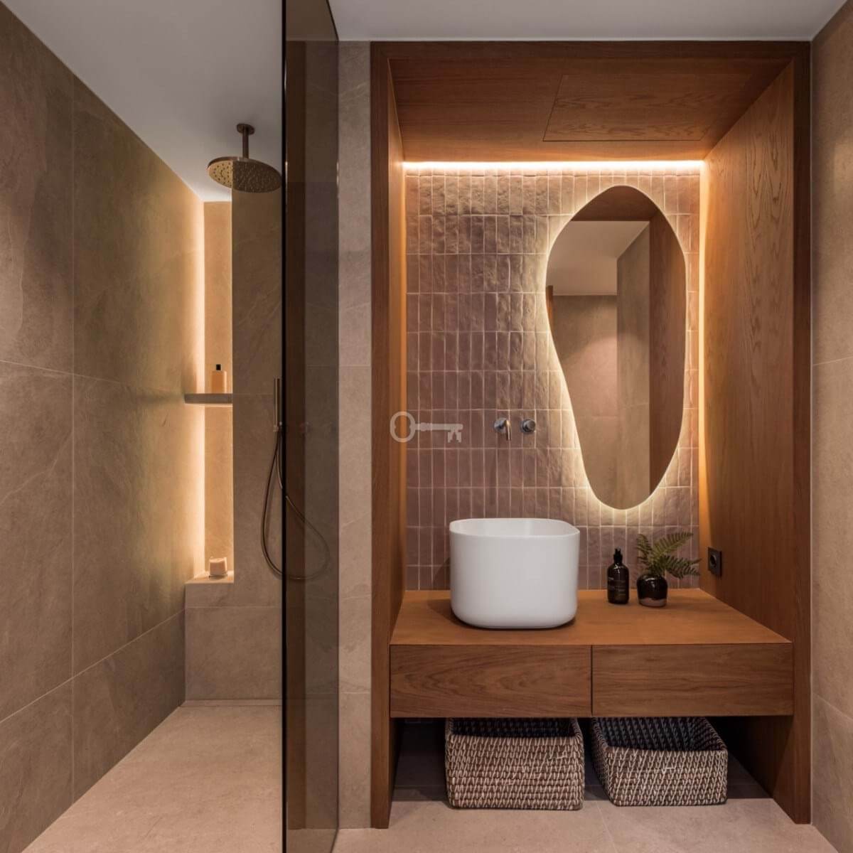 The property offers 4 bedrooms and 3 bathrooms, featuring a warm and sophisticated interior design with natural wood finishes and a timeless aesthetic that perfectly balances comfort, style, and functionality. The spacious master suite includes a private en-suite bathroom, while the remaining bedrooms are generously proportioned and thoughtfully laid out, ideal for both family living and guest accommodation.