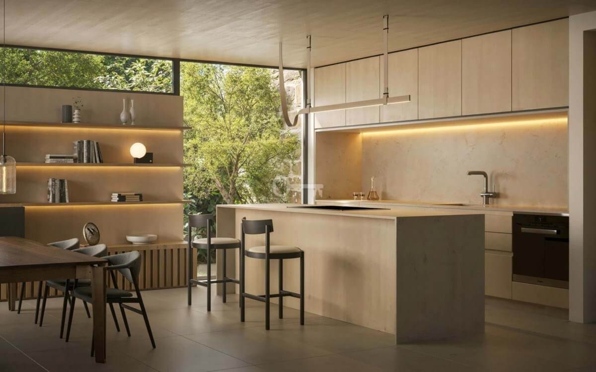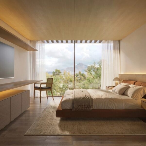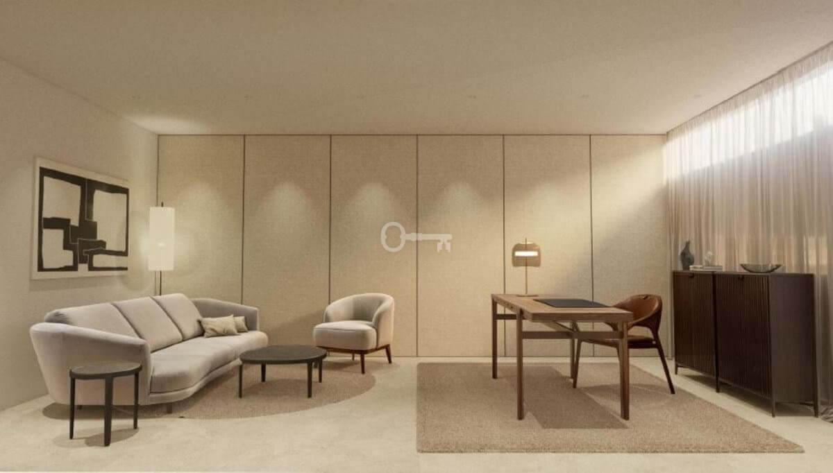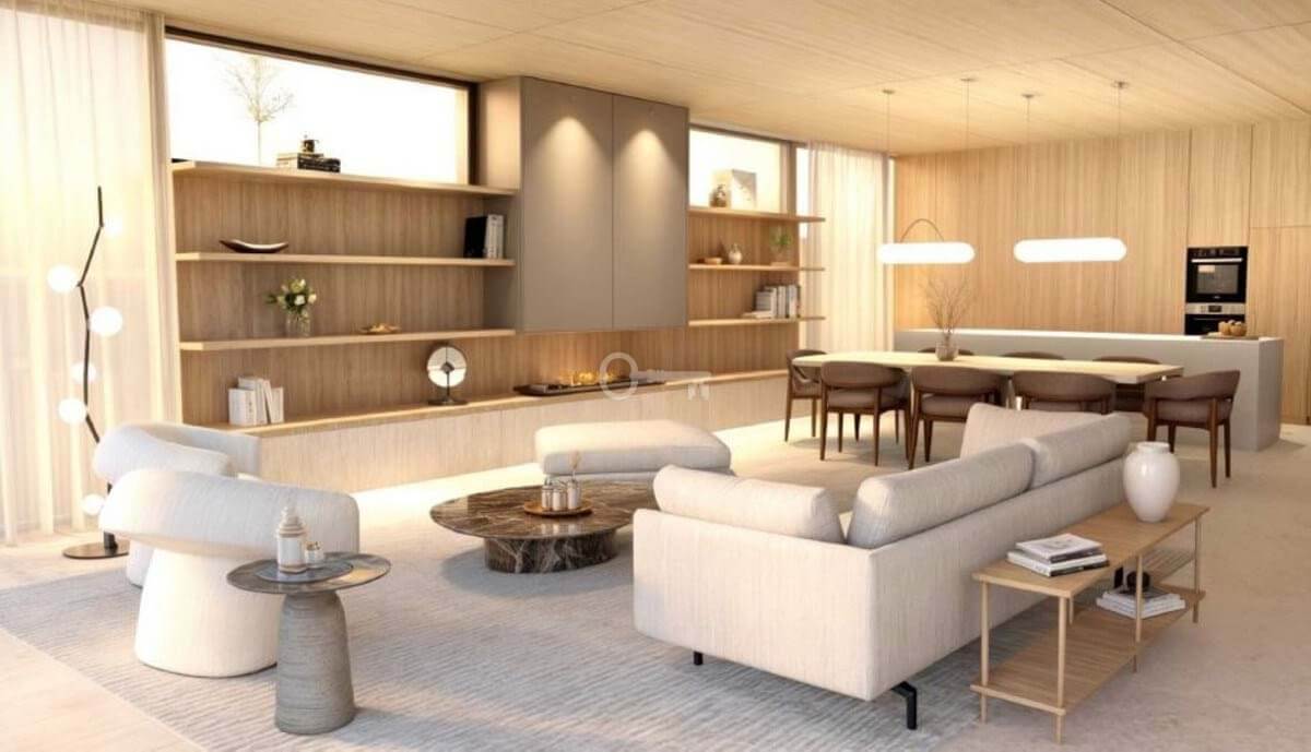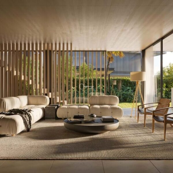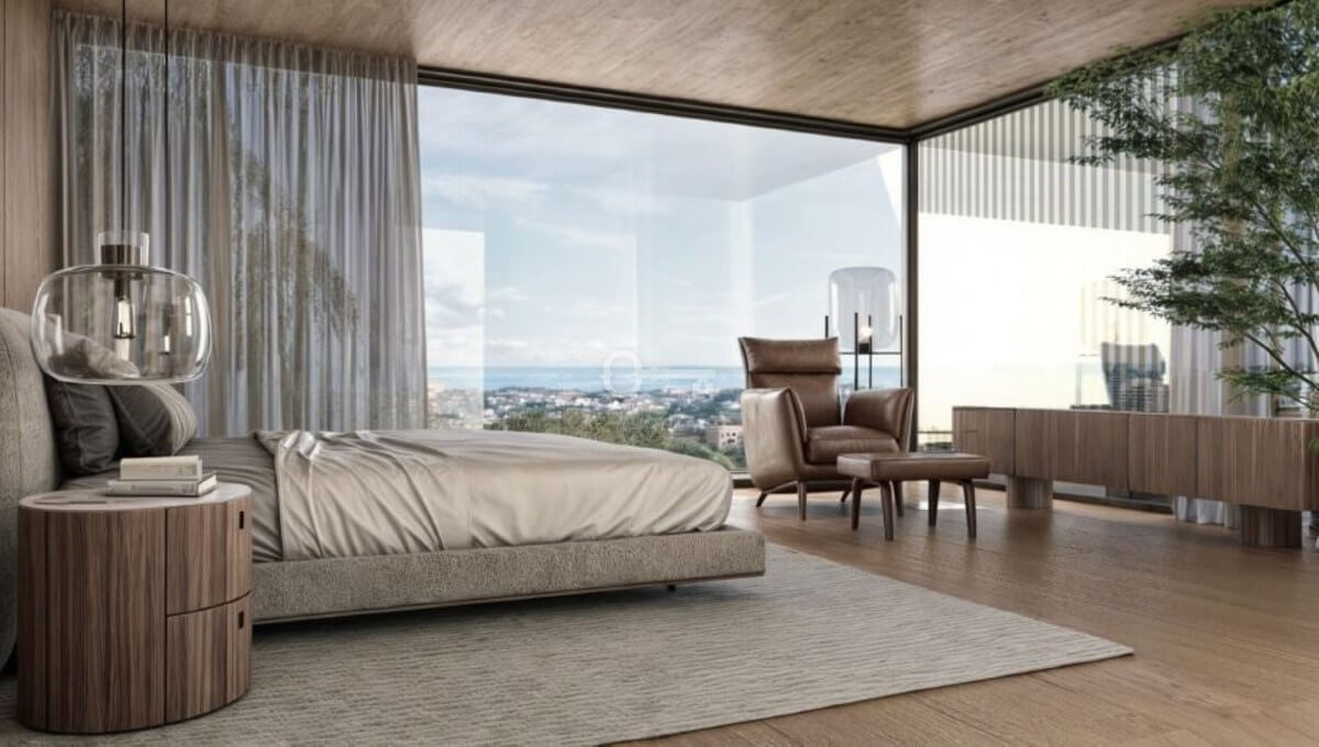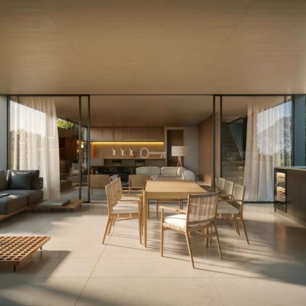 Wnętrza są wykonane z precyzją, łącząc wyrafinowaną estetykę z funkcjonalnym designem. Układ na otwartym planie łączy kuchnię, salon i jadalnię, a wszystko to wzbogacone jest szklanymi drzwiami sięgającymi od podłogi do sufitu, które zalewają przestrzeń naturalnym światłem i zapewniają bezpośredni dostęp do przestrzeni zewnętrznych. Na górnym piętrze znajduje się luksusowy apartament główny z garderobą i łazienką, a także dobrze wyposażone sypialnie dla gości zaprojektowane z myślą o maksymalnym komforcie i prywatności. Na niższym poziomie willa oferuje szereg udogodnień, w tym duży garaż, pokój rozrywkowy, domowe biuro oraz najnowocześniejsze spa i siłownię, zapewniając zaspokojenie wszystkich potrzeb związanych ze stylem życia.