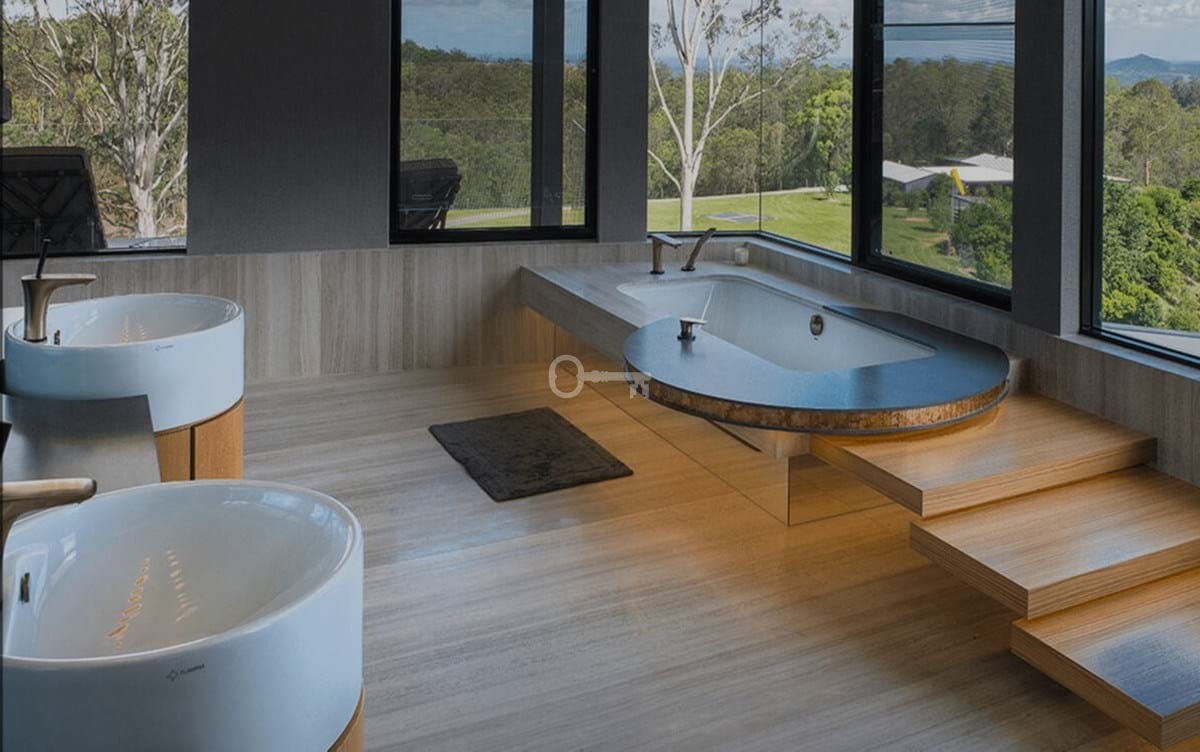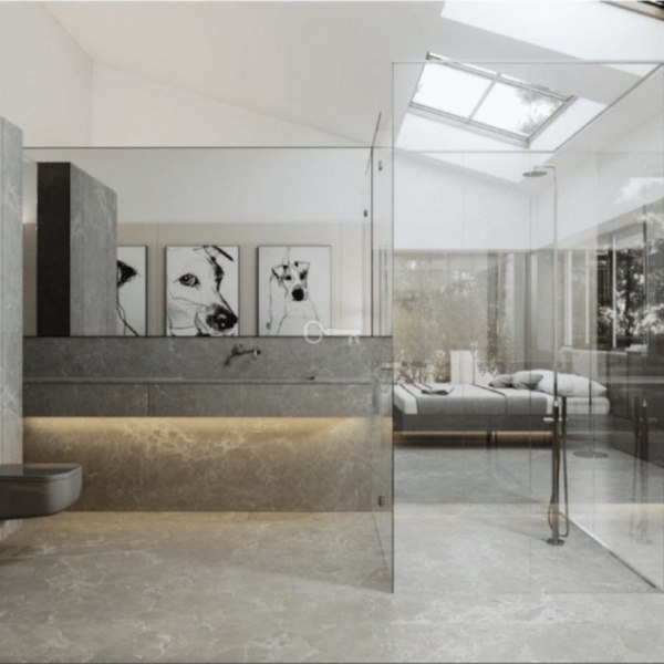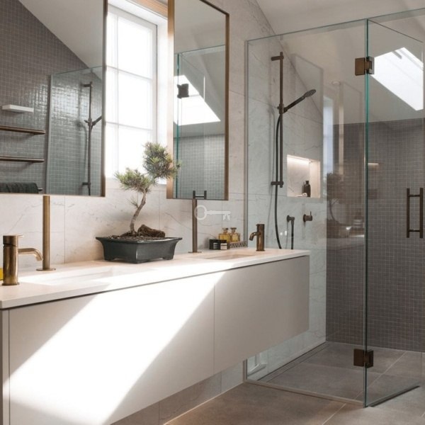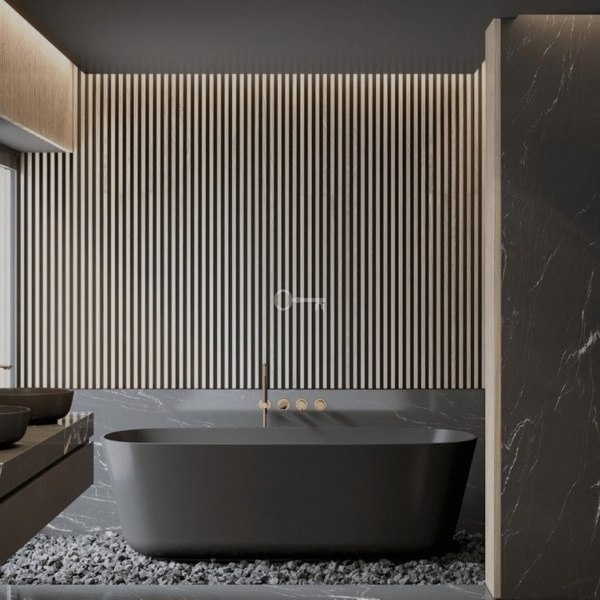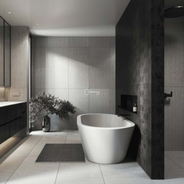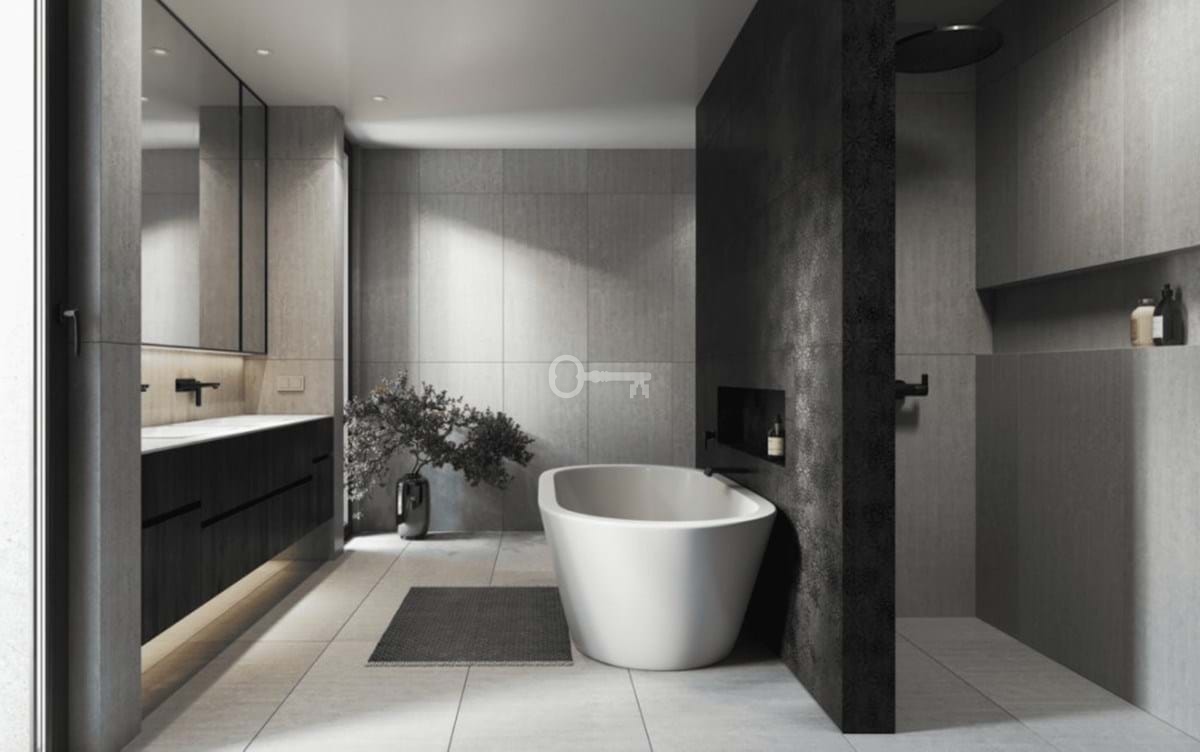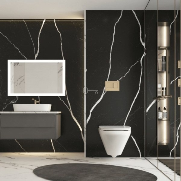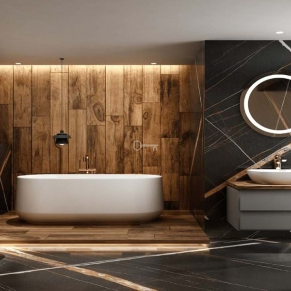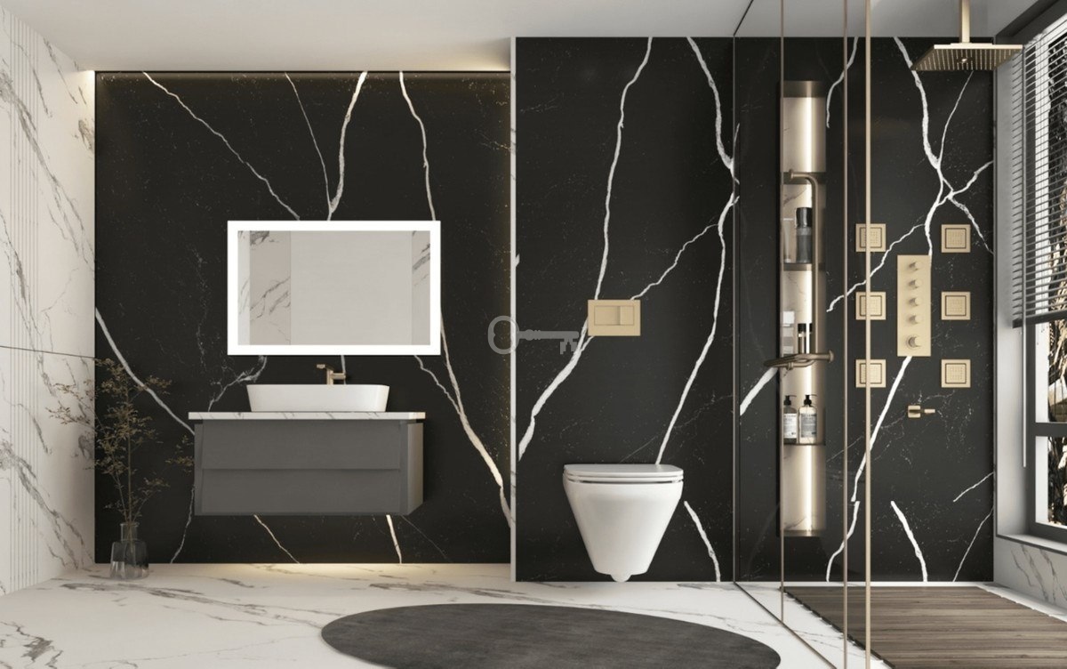 – Ściany łazienek z płytkami COVERLAM (GRESPANIA) 2700X1200