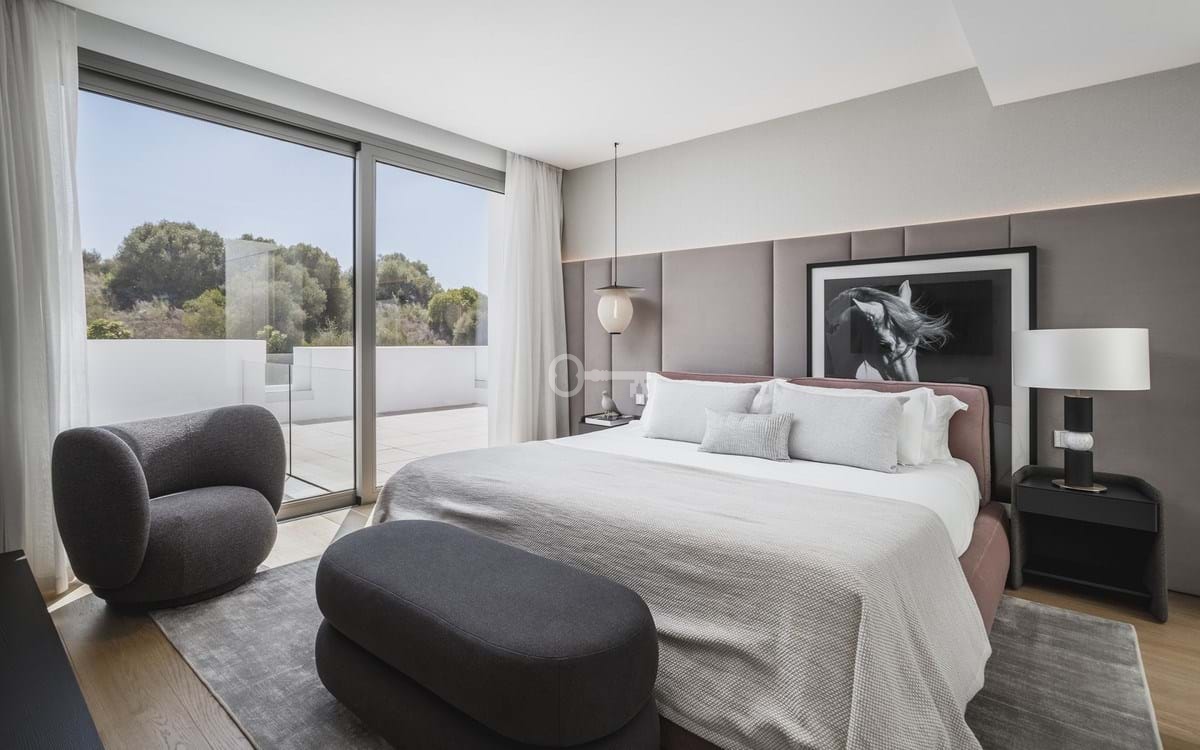 Górne piętro oferuje dodatkowe sypialnie, każda z prywatną łazienką i bezpośrednim dostępem do tarasu.