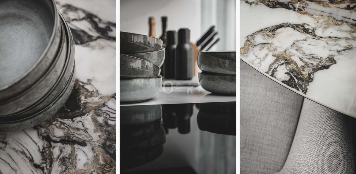 Otwarty plan parteru płynnie łączy salon i jadalnię z dobrze wyposażoną kuchnią, tworząc odrębne, ale połączone ze sobą przestrzenie do gotowania, spożywania posiłków i relaksu.