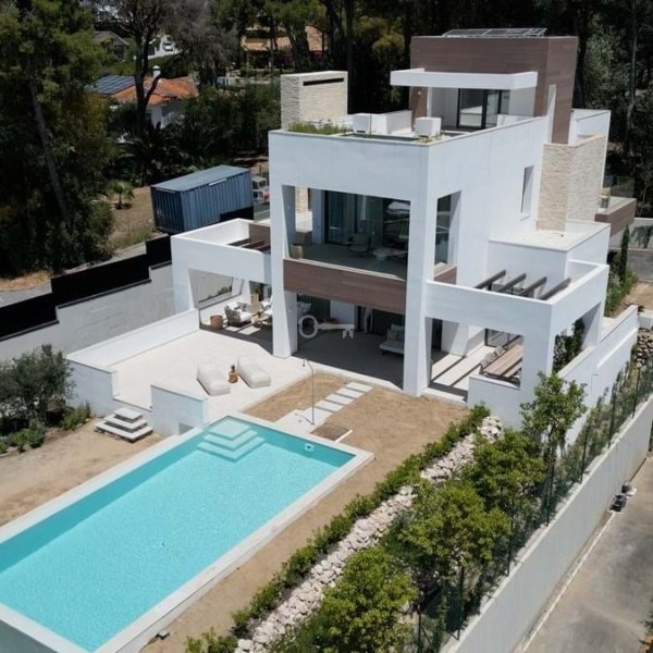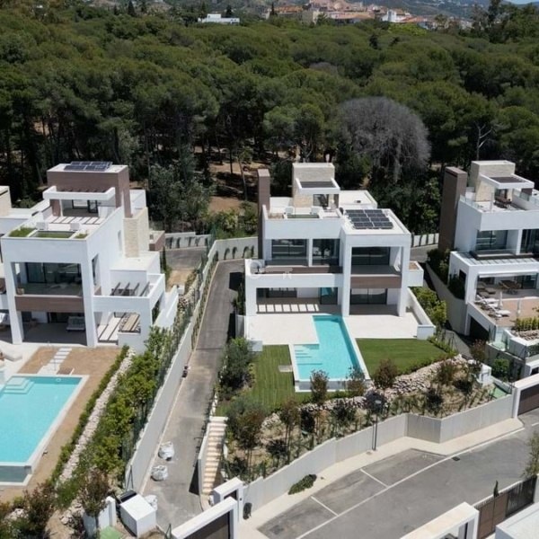 Nowoczesna luksusowa willa o wyjątkowych walorach, położona na zamkniętym osiedlu składającym się z zaledwie 15 willi. Społeczność ma całodobową ochronę i usługi konsjerża i znajduje się w zielonej oazie na skraju słynnej Złotej Mili, kilka metrów od plaży i kilka minut spacerem od starego miasta.