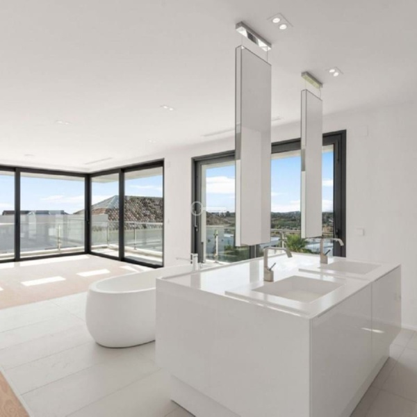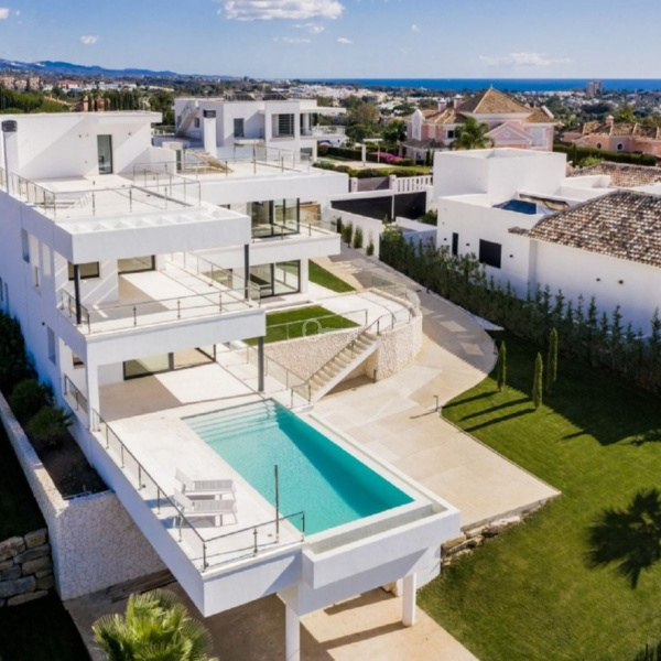 Położony na podwyższonej działce w cichej ulicy, z pięknymi widokami na dolinę golfową, Morze Śródziemne, rozciągające się na Gibraltar, a nawet góry Maroka w jasny dzień.