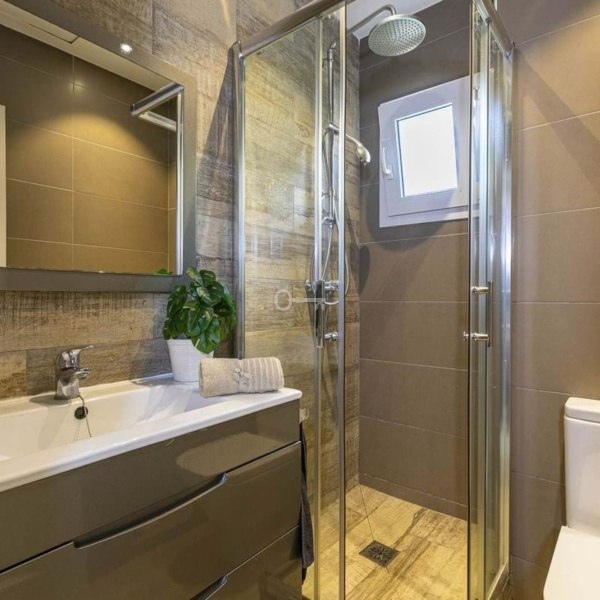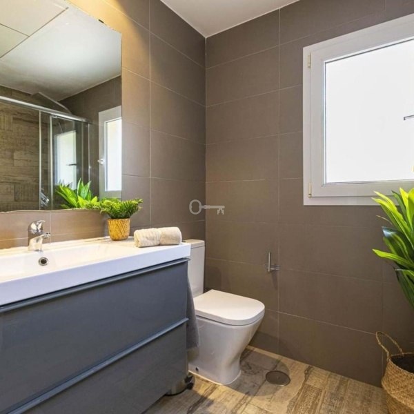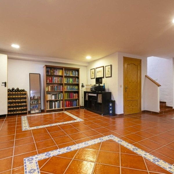 Na parterze znajduje się przestronny i jasny salon z bezpośrednim dostępem do jednego z wielu tarasów otaczających dom. Na tym samym piętrze znajduje się w pełni wyposażona łazienka oraz duża, w pełni wyposażona niezależna kuchnia z jadalnią i bezpośrednim dostępem do pralni. W domu znajdują się 4 sypialnie i 3 w pełni wyposażone łazienki, w tym jedna z łazienką. Dodatkowo dwie sypialnie mają własny taras. Jedna z sypialni znajduje się w piwnicy, która obejmuje również wszechstronną przestrzeń, którą można zaadaptować jako salę kinową, plac zabaw lub siłownię. Garaż z miejscem na dwa samochody jest również wliczony w cenę.