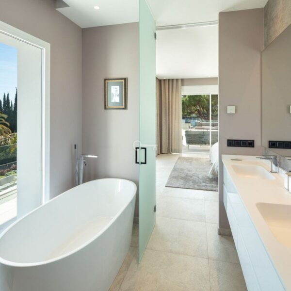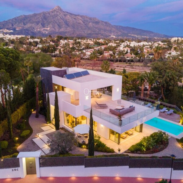 Indywidualny dom zaprojektowany w nowoczesnym i współczesnym stylu, zbudowany z najwyższą jakością i wykończeniami renomowanych marek na rynku. Niezrównane widoki na pole golfowe i górę La Concha sprawiają, że każdy kąt w tej willi jest miejscem, w którym chce się spędzać czas. Dogodnie rozplanowany na dwóch piętrach i dodatkowej piwnicy, ma 5 pięknych sypialni z łazienkami oraz 2 toalety dla gości, przestronny i jasny salon / jadalnię z dużymi oknami, które natryskują wnętrze nieruchomości dużą ilością słońca i widokami na pole golfowe w pełni, wraz z w pełni wyposażoną zaprojektowaną kuchnią.