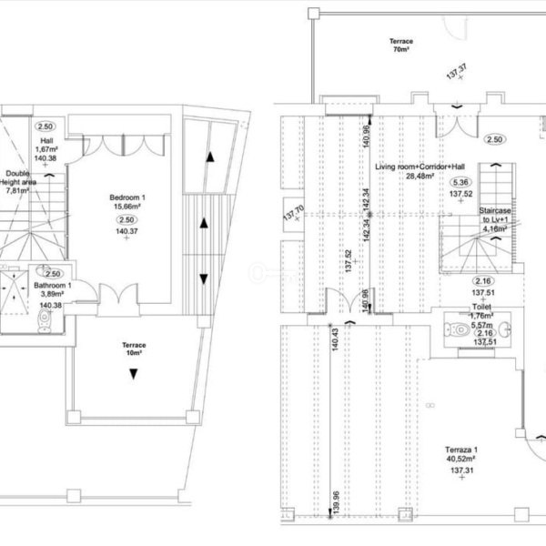 Na piętrze znajduje się jasna sypialnia z prywatnym tarasem z panoramicznym widokiem na morze, a także w pełni wyposażona łazienka.