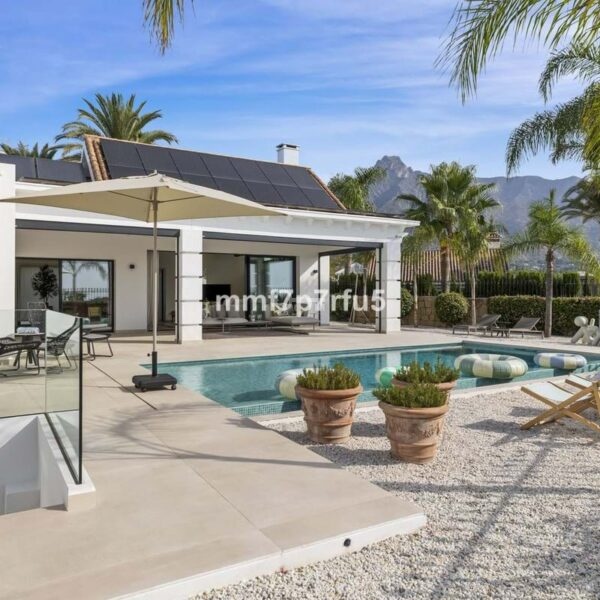 Położona w jednej z najbardziej prestiżowych lokalizacji w Marbelli, ta w pełni odnowiona współczesna willa łączy w sobie luksus, zrównoważony rozwój i najnowocześniejszą technologię. Położona przy cichej ślepej uliczce w ekskluzywnym klubie Las Lomas del Marbella, nieruchomość oferuje prywatność, panoramiczne widoki na morze i nowoczesne życie bez wysiłku.