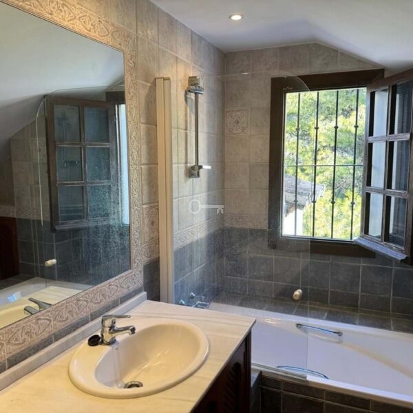 Ta w pełni zewnętrzna nieruchomość o powierzchni 254 m² (według wyceny) na parterze, pierwszym piętrze, poddaszu i półpiwnicy oferuje prywatne wejście z podjazdem, dwa prywatne miejsca parkingowe i prywatny ogród zapewniający ostateczne odosobnienie. Układ obejmuje cztery sypialnie (dwie z łazienkami), trzy łazienki i toaletę, przestronny salon-jadalnię z otwartą kuchnią i kominkiem rozprowadzającym ciepło oraz półpiwnicę z trzema dodatkowymi pokojami do wszechstronnego wykorzystania. Częściowe widoki na morze, Gibraltar i wybrzeże Afryki dodają uroku, a nowe aluminiowe obudowy z podwójnymi szybami zapewniają nowoczesny komfort. Gotowy do zamieszkania, z ważnym certyfikatem energetycznym.