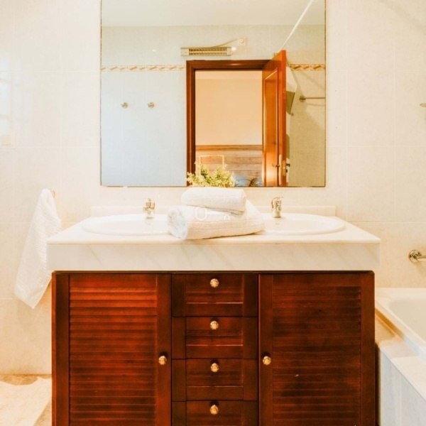 Na parterze znajduje się dodatkowy przestronny salon i 3 kolejne dwuosobowe sypialnie, wszystkie z dostępem do 2 pełnych łazienek, w tym jednej z łazienką. Dodatkowo dom posiada niezależne wejście dla samochodów prowadzące do zadaszonego garażu z miejscem na 2 samochody, zapewniając wszelki potrzebny komfort.