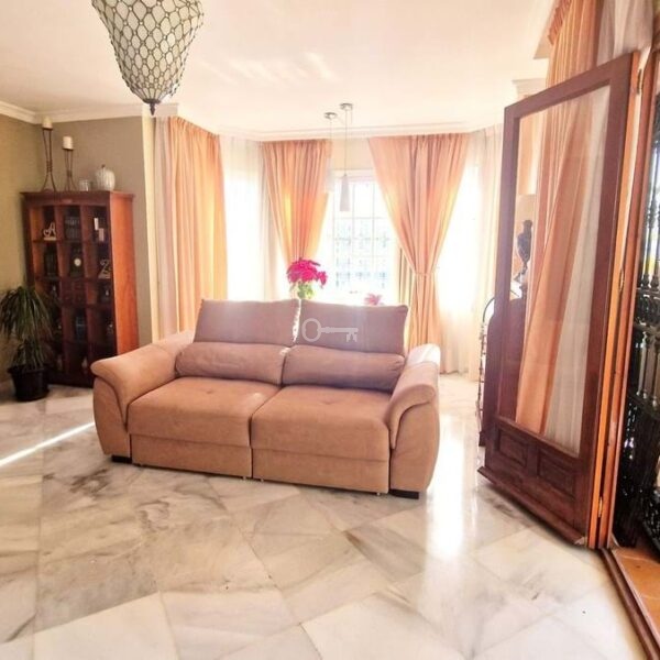 Fantastic semi detached house for sale in Mijas Golf. Very sunny and bright, this property has south and west facing orientation and direct access to the pool area. With 2 entrances, this property offers on the ground floor a square lounge dining with large back terrace, Fully equipped kitchen which could be openened to the lounge, and a cloak room. On the first floors there are 3 bedrooms and 1 bathroom, and on the last floor, there is the master bedroom with an en suite bathroom , large wardrobe and private solarium with storage and utility, plus a small private office. It i set in an urbanisation with pool and gardens, and communal parking area. It is a great family home. Stays furnished.