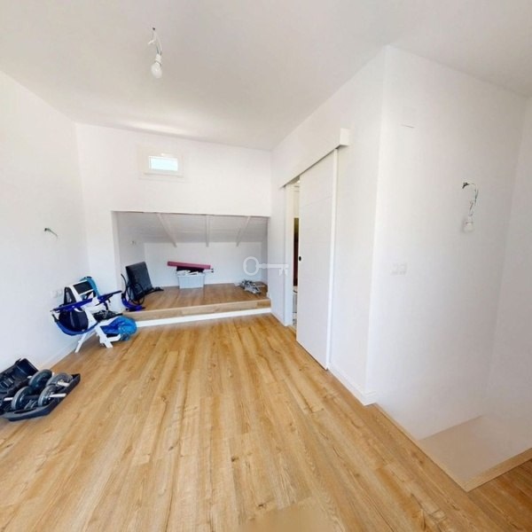 Na pierwszym piętrze znajdują się dwie z trzech sypialni oraz nowoczesna i funkcjonalna łazienka z prysznicem, a także pralnia. Schody prowadzą na najwyższe piętro, gdzie znajduje się trzecia sypialnia, łazienka z prysznicem oraz taras z pięknym panoramicznym widokiem na góry i pole golfowe.
