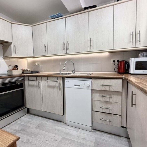 Na parterze ta urocza nieruchomość składa się z przedpokoju, salonu / jadalni, w pełni wyposażonej kuchni, oddzielnej pralni / spiżarni, dwuosobowej sypialni (obecnie używanej jako biuro) z nowoczesną łazienką z prysznicem. Na piętrze mamy 2 kolejne dwuosobowe sypialnie i nowoczesną łazienkę oraz dodatkowe wbudowane szafy w przedpokoju. Z obu sypialni jest dostęp do pięknego, słonecznego, zamkniętego tarasu. Nieruchomość posiada również 2 patia, jedno przy wejściu, a drugie przez drzwi tarasowe z salonu, pozwalające na słońce lub cień o każdej porze dnia. Dom ma powierzchnię 91 m2 i 47 m2 tarasów.