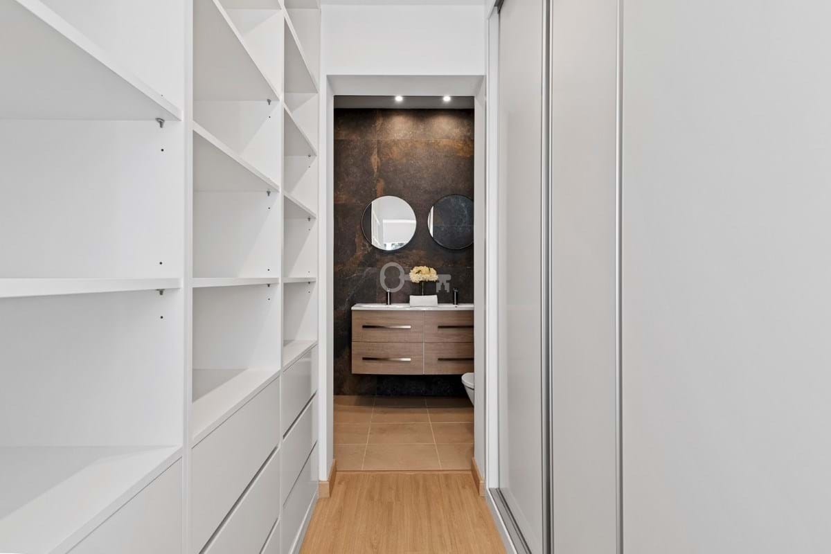 Starannie zaprojektowany dom oferuje 2 sypialnie i 2 pełne łazienki oraz toaletę dla gości. Główna sypialnia jest przestronna i wypełniona naturalnym światłem, z elegancką łazienką i garderobą, która tworzy prywatne i wyrafinowane odosobnienie.