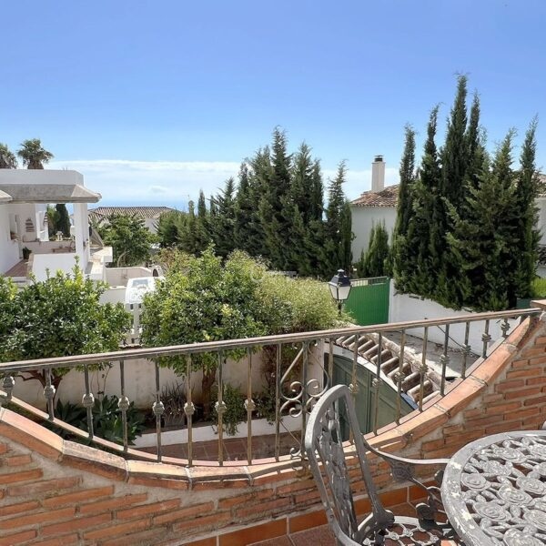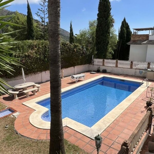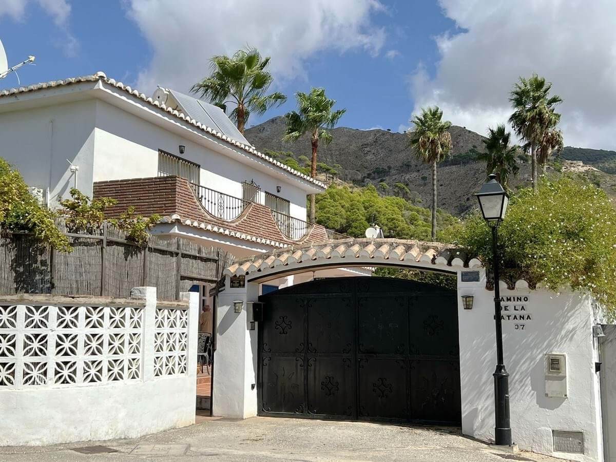 UROCZA ANDALUZYJSKA WILLA położona przy cichej, zamkniętej ślepej uliczce na obrzeżach Mijas Pueblo. Oferuje prywatność w spokojnej okolicy, zaledwie 5 minut jazdy od centrum miasta. Orientacja południowa w bardzo prywatnym otoczeniu. Duży prywatny basen z tarasem, miejsce do grillowania, dojrzałe ogrody z drzewami owocowymi, szafka i szopa ogrodnicza. Na przestronnym podjeździe znajduje się garaż z dodatkowym miejscem parkingowym. Piękny frontowy zadaszony ganek z filarami. Piękne widoki na góry i częściowe widoki na morze z najwyższego piętra.