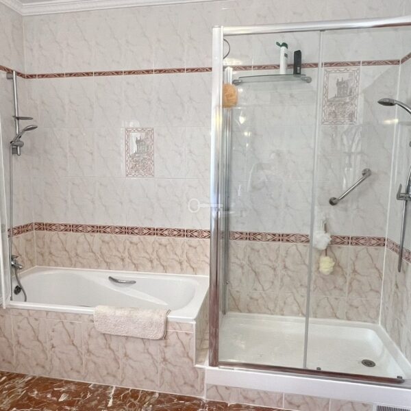 POWYŻEJ: 4 duże sypialnie; 2 przestronne łazienki. Główna sypialnia jest ogromna. Wszystkie sypialnie mają szafy i okna z roletami. Duży słoneczny taras przy głównej sypialni i 2. sypialni. Kolejny piękny taras przy sypialni 3, wychodzący na północny zachód. Bardzo ładne częściowe widoki na morze i góry! Ta nieruchomość została zbudowana około 2003 roku.