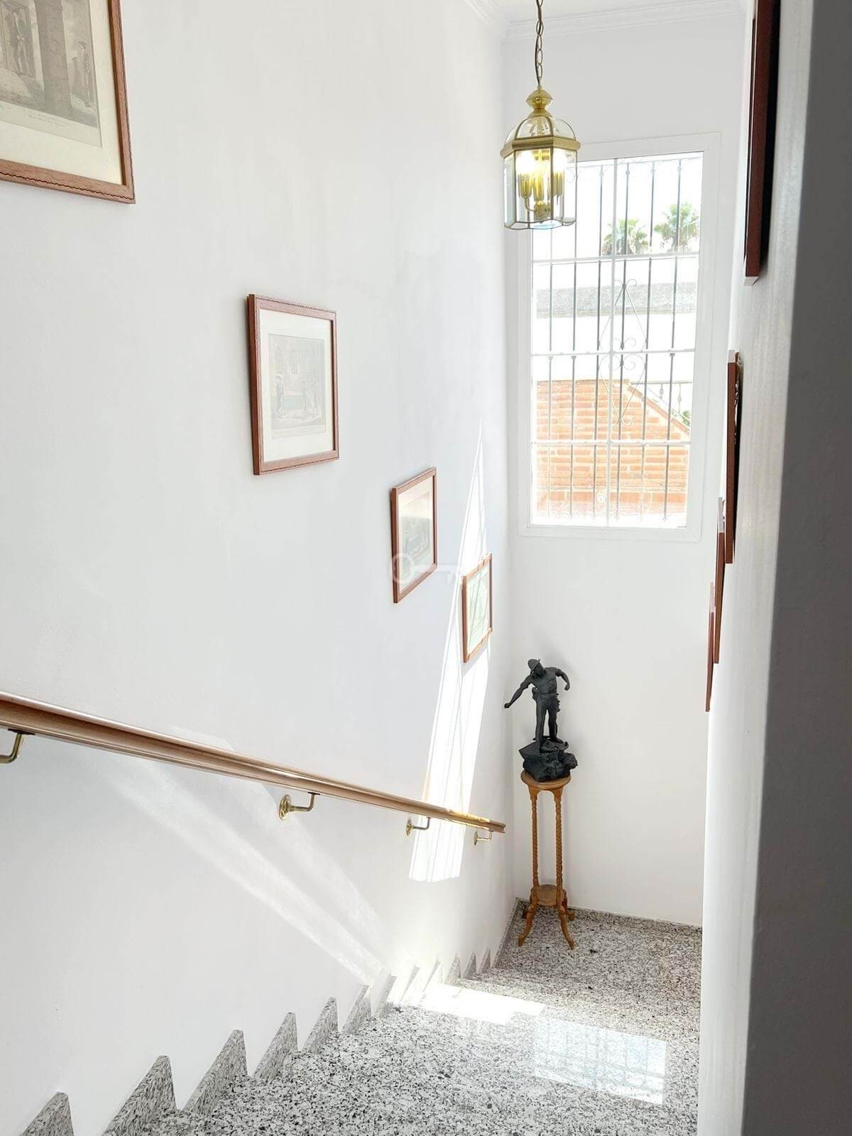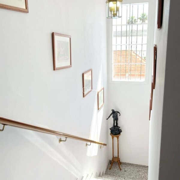 Hol wejściowy, duży salon-jadalnia z kominkiem i drzwiami na patio prowadzącymi do zachodniego ogrodu. Marmurowe podłogi. Ogromna wyposażona kuchnia z częścią śniadaniową. A/C h+c. Wifi. Schowek pod schodami, idealny do przechowywania sprzętu sportowego lub do wykorzystania jako mały warsztat / pokój hobby. Duża sypialnia z szafą. Pełna łazienka.