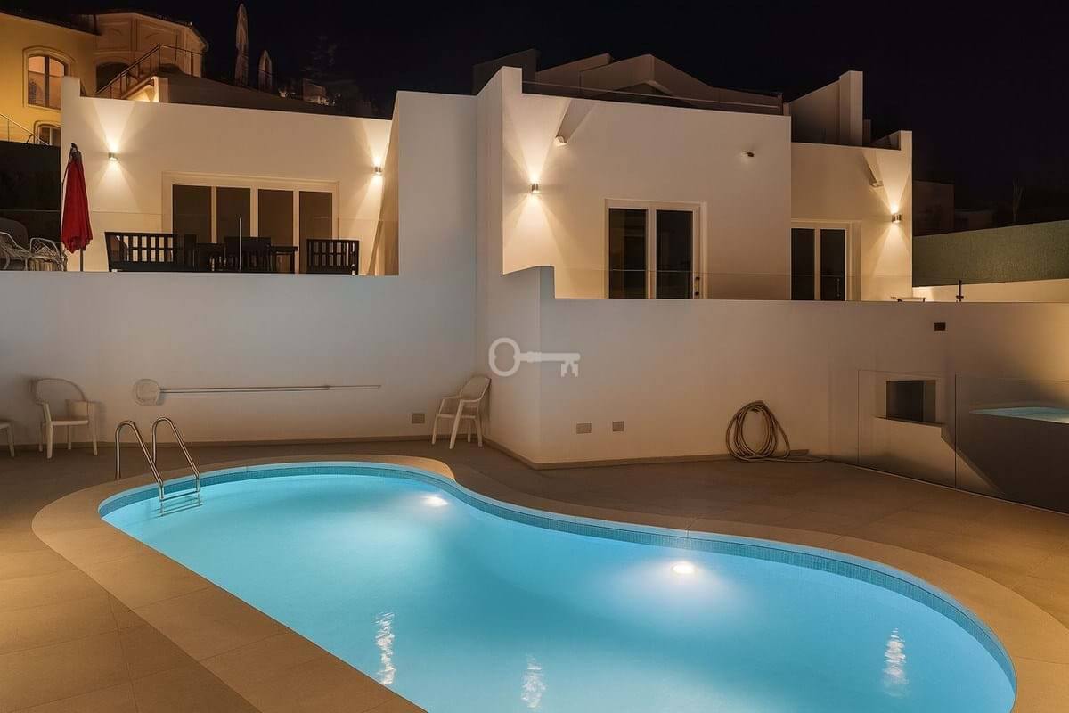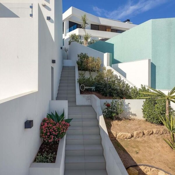 Będziesz cieszyć się tymi widokami od momentu wejścia do środka. Dom oferuje fenomenalną powierzchnię zewnętrzną na pięciu tarasach, w tym ogromne solarium na dachu. Uzupełnieniem jest orzeźwiający prywatny basen z prysznicem na świeżym powietrzu, zapewniający dużo miejsca do wygrzewania się na słońcu i przyjmowania gości.