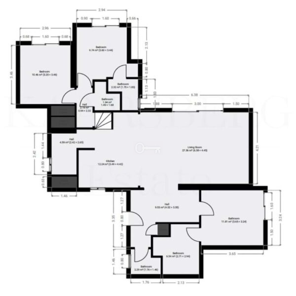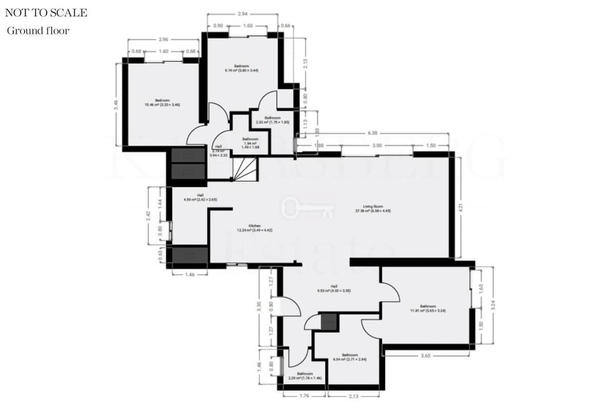 Nieruchomość ma powierzchnię 182 m² i obejmuje 3 sypialnie i 3 łazienki, położone na łatwej w zarządzaniu działce o powierzchni 222 m².