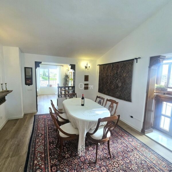 The bright and welcoming living room, with its original fireplace, enjoys spectacular views over the village of Mijas, the countryside and the Mediterranean Sea. On clear days you can see the mountains of Africa. There is a covered terrace connected to both the newly renovated kitchen and the living room where you can enjoy a meal with guests or to relax with a glass of wine. This terrace shares the same beautiful views as the sitting room.