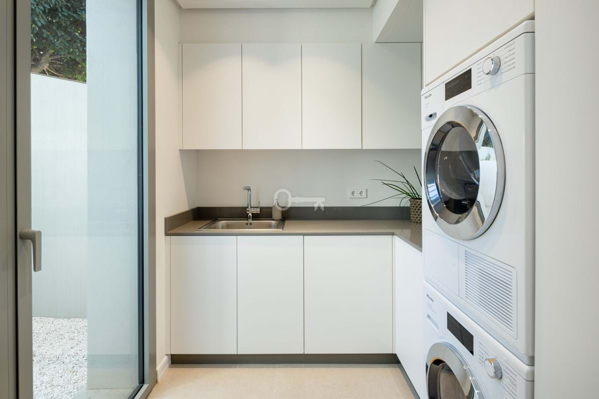Praktyczne funkcje uzupełniają elegancję willi. Bezpieczny garaż na dwa samochody z dodatkowym miejscem do przechowywania, wysokiej klasy systemy alarmowe i okna z podwójnymi szybami zapewniają bezpieczeństwo i wygodę na każdym poziomie. Nowoczesna infrastruktura nieruchomości gwarantuje spokój ducha, jednocześnie wspierając luksusowy styl życia przez cały rok.