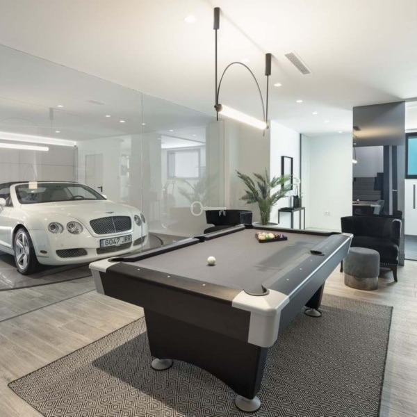 Willa jest rozmieszczona na 3 poziomach, w tym w piwnicy, a także na przestronnym tarasie słonecznym na dachu. Na poziomie piwnicy znajduje się prywatny garaż z mechanizmem obrotnicy, świetna strefa rozrywki z salą telewizyjną / kinową, piwniczką z winami, salonem; ładna sypialnia dla personelu / gości z łazienką, a także pralnia, toaleta dla gości i pomieszczenie techniczne.