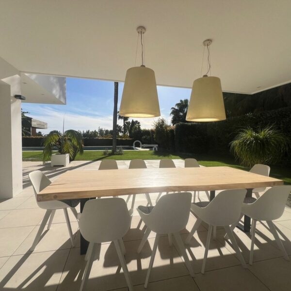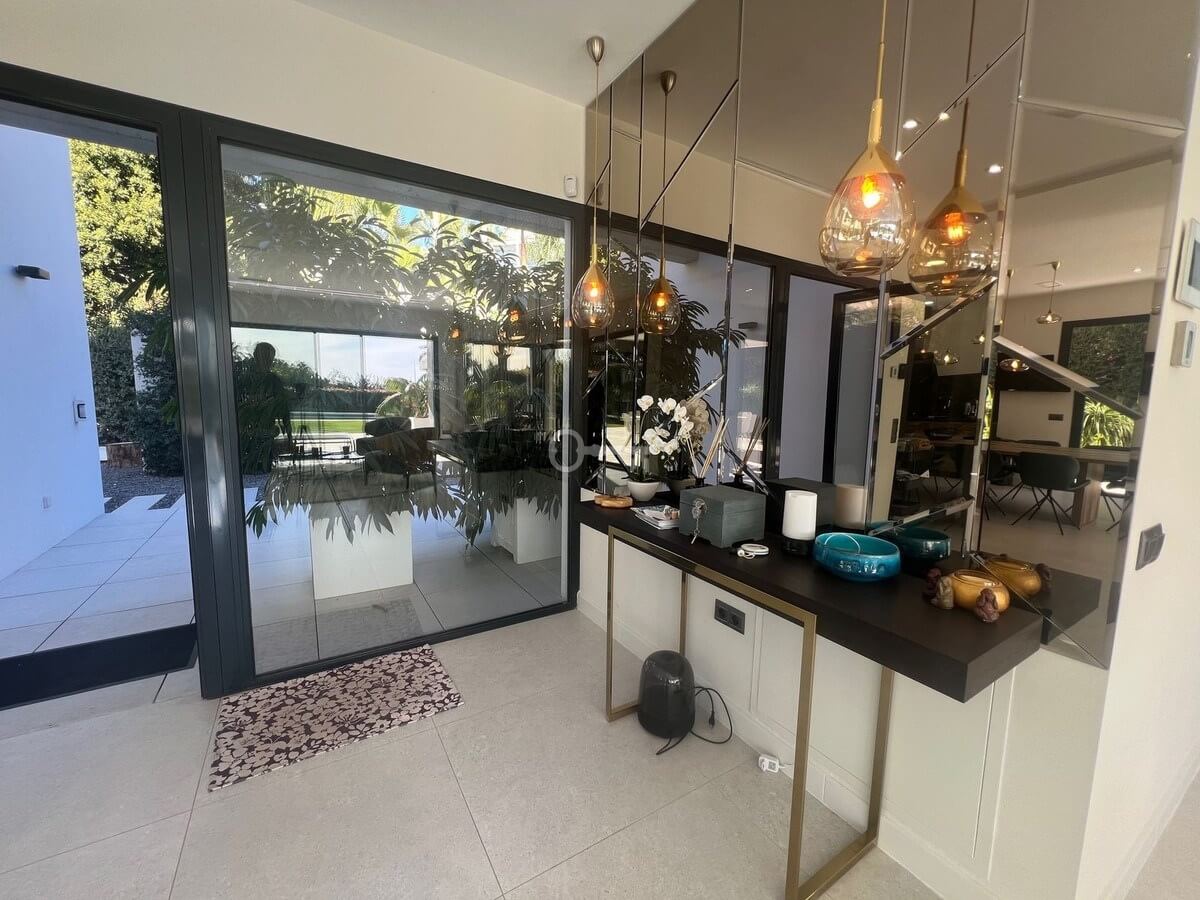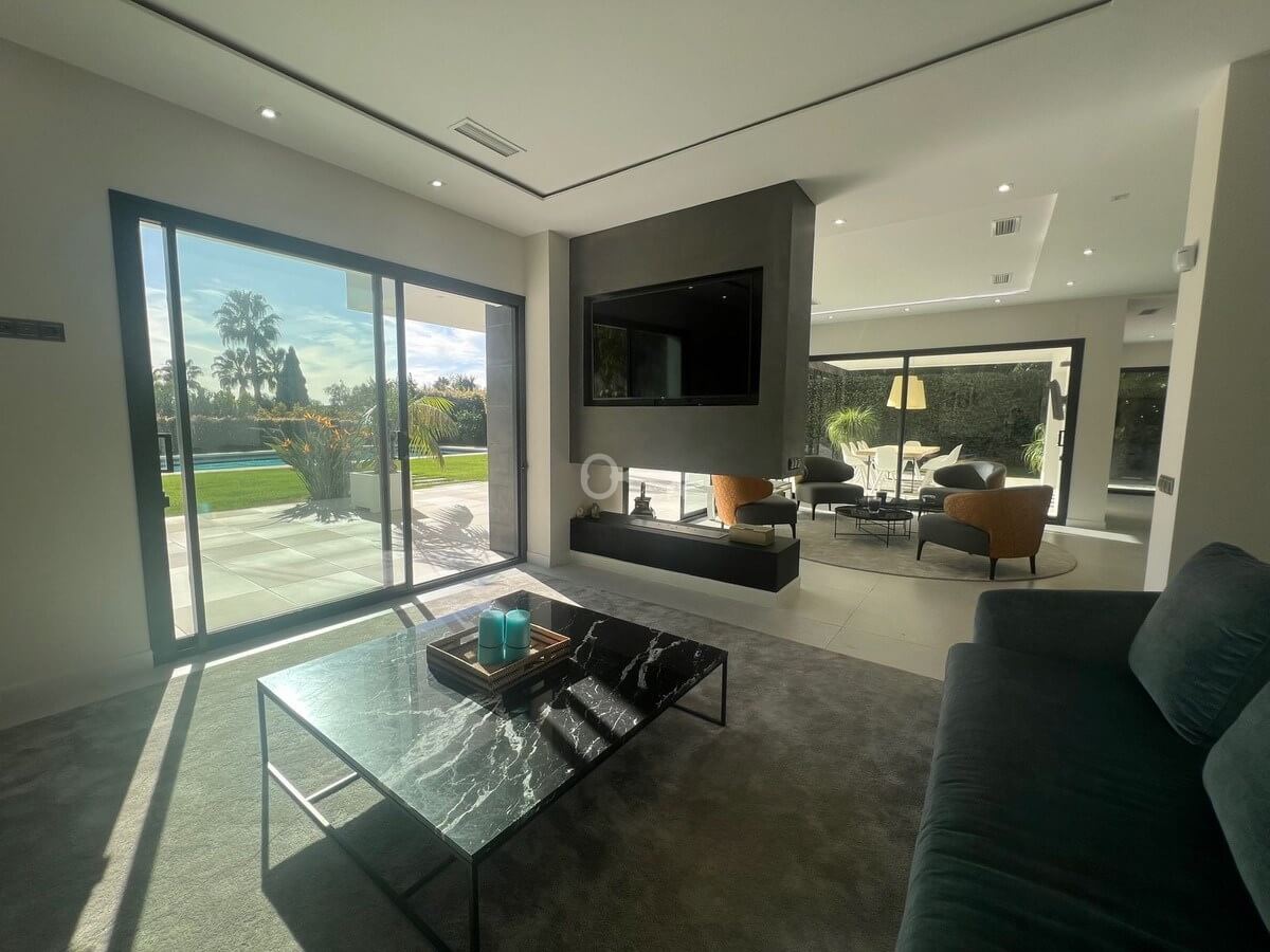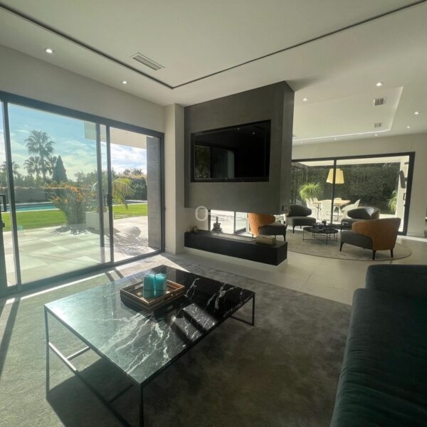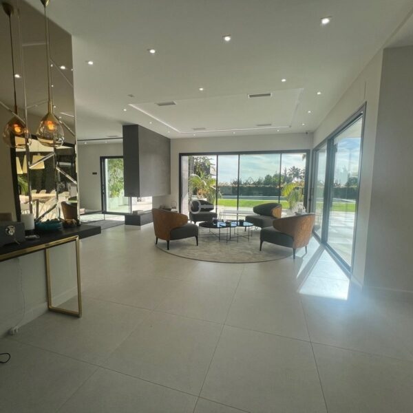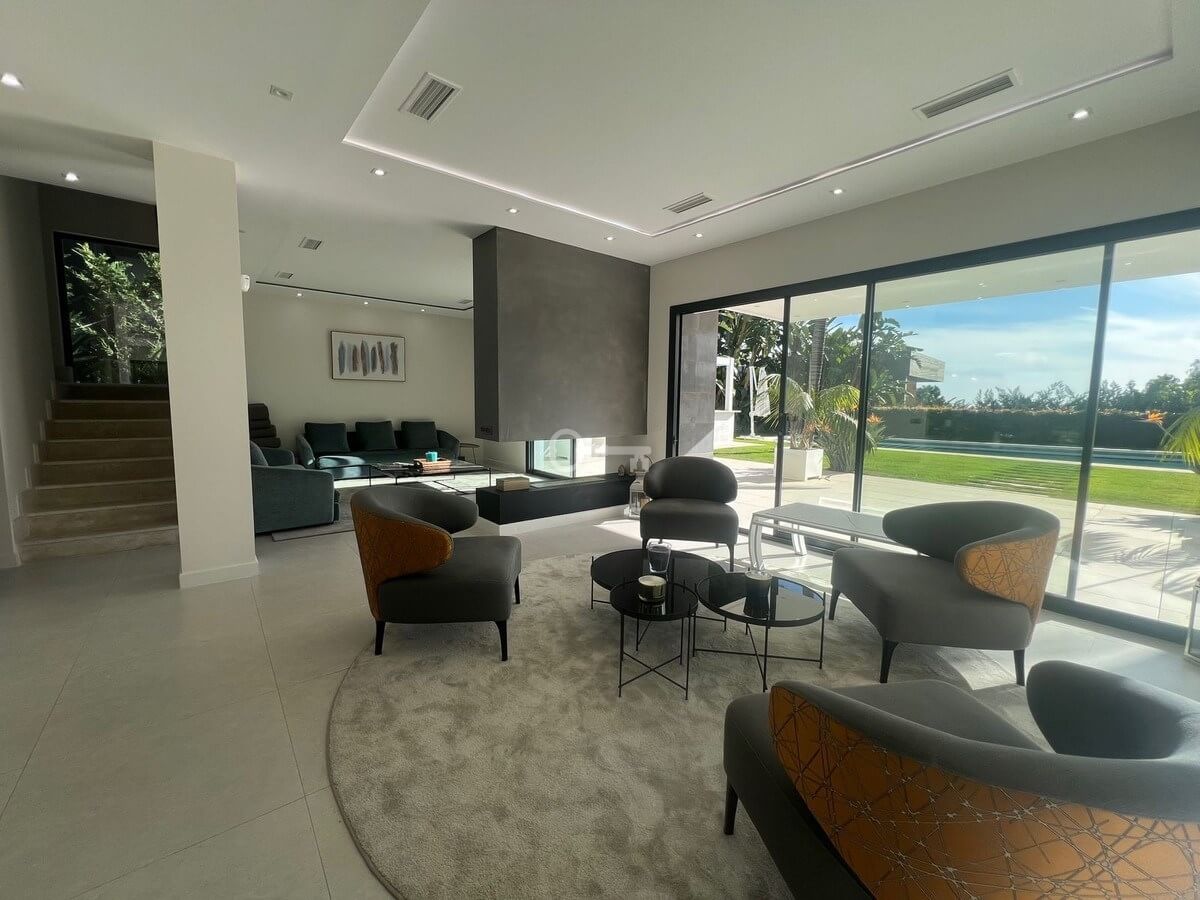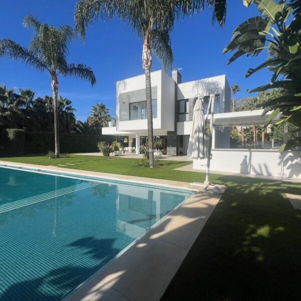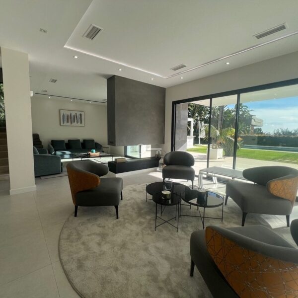 Villa in the golden mile area of Marbella, Malaga, is one of the most modern villa in the area with finished in 2023, the house has six bedrooms with four full bathrooms and a toilet, fully furnished and ready to live, has a garage for 3 cars and game room with guest bedroom, on the first floor has a very spacious living – dining room with access to the pool and garden, has fully fitted kitchen with high quality appliances, the property has an interior lift, on the first floor we have 4 bedrooms with en suite bathrooms and with access to terrace and solarium with a south facing with sea view, the property has home automation throughout the house with air conditioning and heat pump and underfloor heating, the property is located in a cul-de-sac street only and exclusively for housing in the area has 24 hour security, if you want to live in the most exclusive area of MARBELLA ask for an appointment to see it.