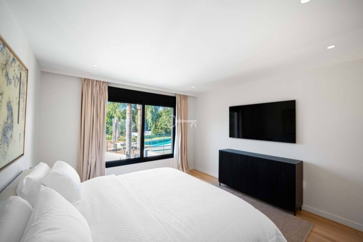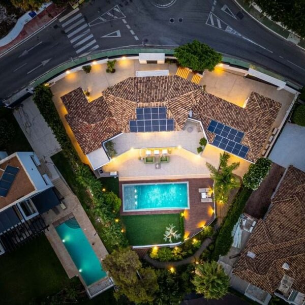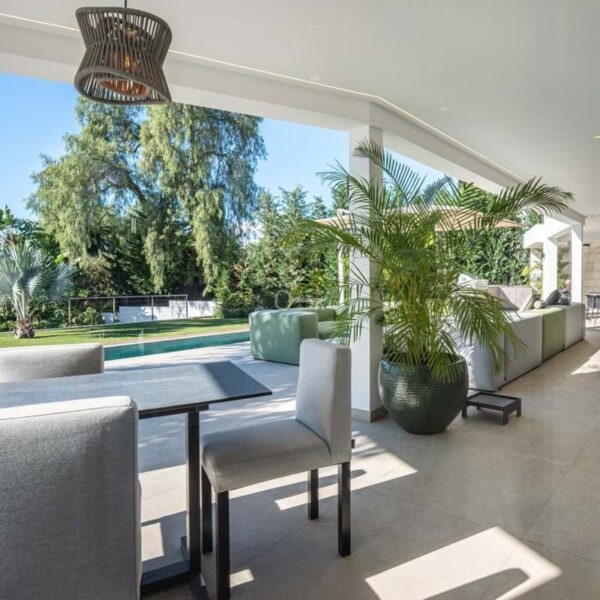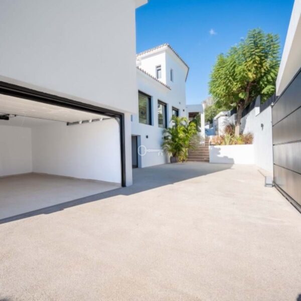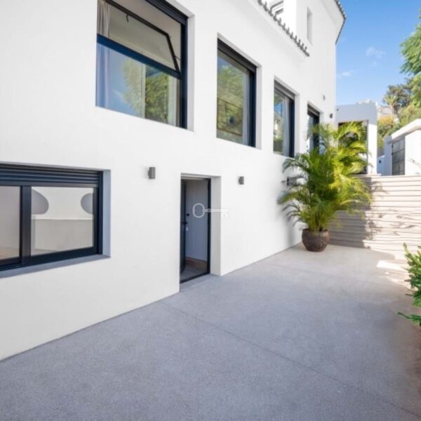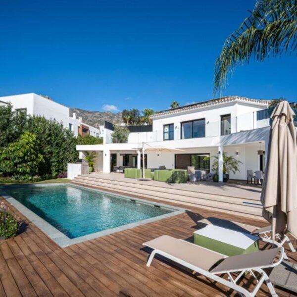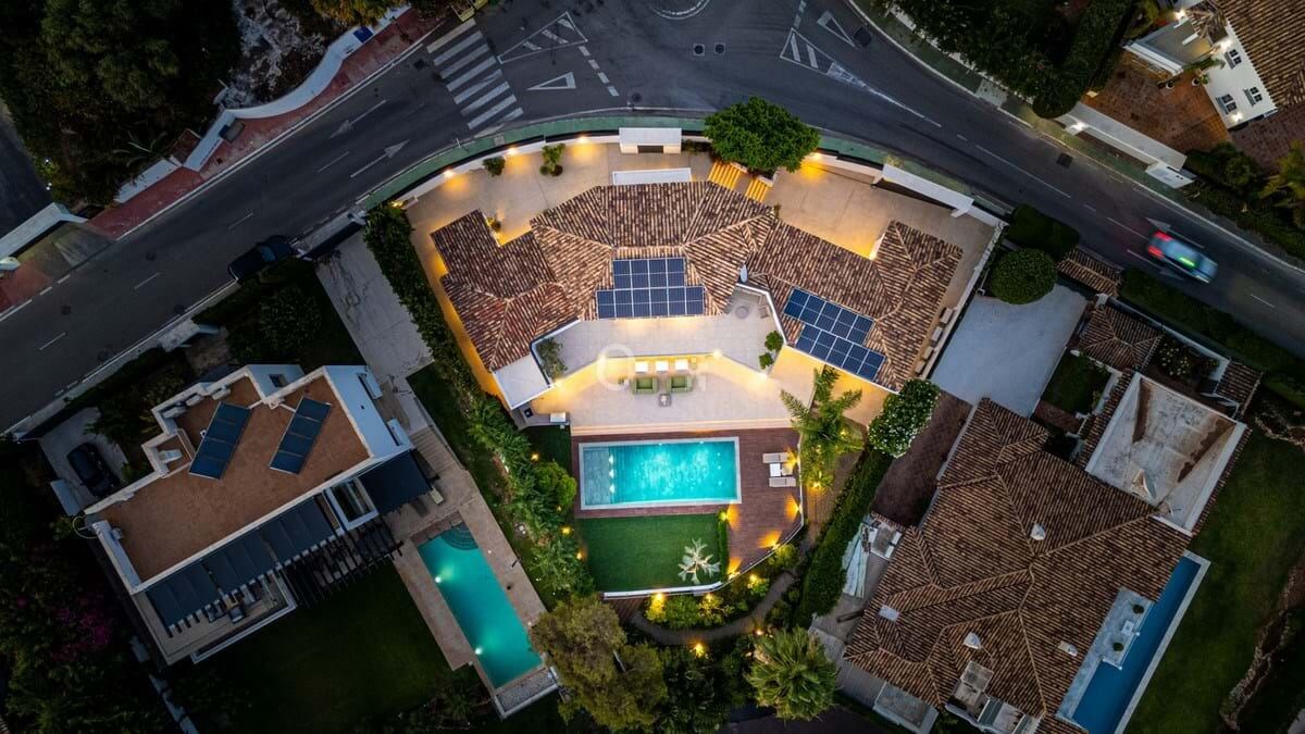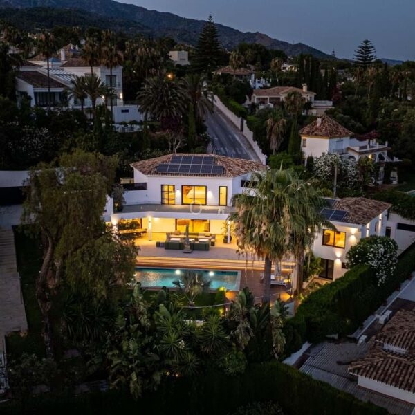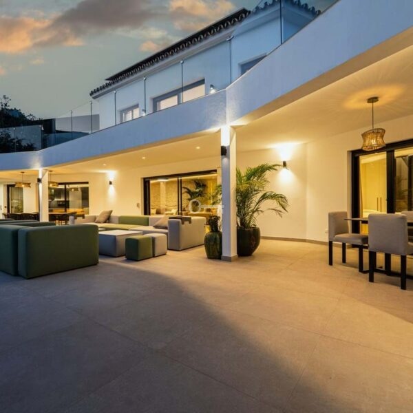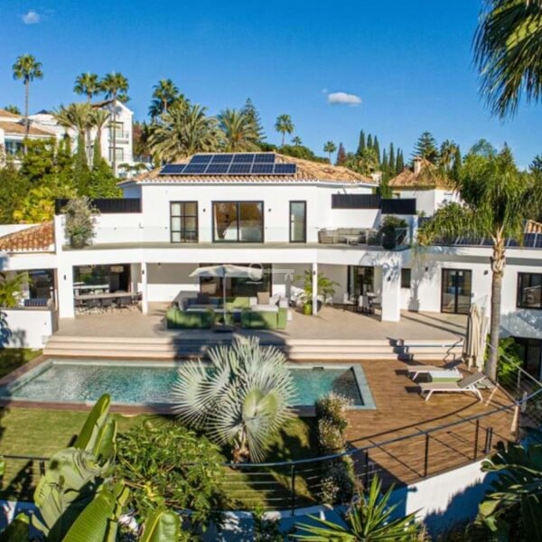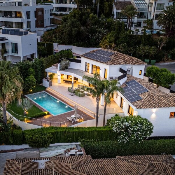 Villa Royale is a five-bedroom luxury home in the prestigious Nagüeles area. The property offers panoramic sea views, elegant open-plan living and a seamless flow between indoor and outdoor spaces. Every room opens to terraces and gardens that surround a heated pool, creating a calm and private retreat for modern living.