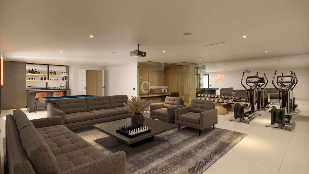 Ta willa to architektoniczny klejnot, który łączy nowoczesne linie i najwyższej jakości materiały z ciepłym, ponadczasowym charakterem, który sprawia, że zaprasza przez cały rok. Ta ekskluzywna nieruchomość z 4 sypialniami i 4 łazienkami została zaprojektowana tak, aby zapewnić idealną równowagę między elegancją, komfortem i stylem. Z eleganckiego holu wejściowego wchodzi się do przestronnego, wypełnionego światłem salonu i jadalni z kuchnią na otwartym planie z pralnią, płynnie połączoną z werandą i wspaniałym prywatnym basenem. Na tym poziomie znajduje się również sypialnia dla gości – która może również służyć jako domowe biuro – oraz łazienka dla gości. Jeśli chcesz jeszcze bardziej podnieść swój styl życia, sauna, inteligentny system domowy, siłownia i niestandardowa piwniczka na wino z pewnością urozmaicą Twój dzień. Na piętrze znajduje się główna sypialnia z garderobą, łazienką i bezpośrednim dostępem do dużego tarasu z widokiem. Dwie dodatkowe sypialnie i pełna łazienka uzupełniają to piętro. Piwnica o powierzchni 157,82 m² oferuje jasną, wielofunkcyjną przestrzeń z naturalnym światłem, pełną łazienką i pomieszczeniem technicznym – idealnym na siłownię, kino domowe lub strefę rozrywki.