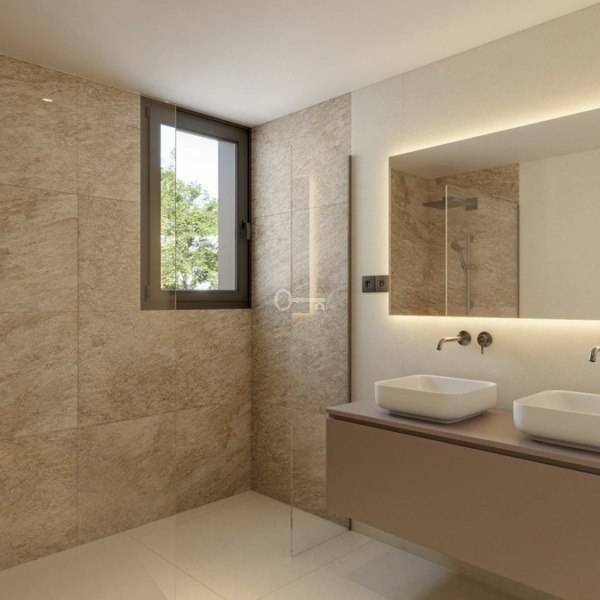 Ta willa ucieleśnia wyrafinowane połączenie nowoczesnej architektury i ciepłego, ponadczasowego designu. Wykonana z najwyższej jakości materiałów i dbałością o każdy szczegół, ta ekskluzywna rezydencja oferuje 4 sypialnie, 3 łazienki i toaletę dla gości, zaprojektowane tak, aby podnieść poziom codziennego życia. Przyjazny hol wejściowy prowadzi do przestronnego, otwartego salonu i jadalni, gdzie naturalne światło wpada przez duże okna i płynnie łączy się z werandą i prywatnym basenem. Na parterze znajduje się również wszechstronna sypialnia dla gości lub biuro, łazienka dla gości oraz w pełni wyposażona kuchnia na otwartym planie z pralnią. Na piętrze znajduje się apartament główny z garderobą, łazienką i dostępem do dużego tarasu. Dwie dodatkowe sypialnie i wspólna łazienka uzupełniają ten poziom, starannie zaaranżowane, aby zapewnić zarówno prywatność, jak i funkcjonalność. Willa obejmuje również piwnicę o powierzchni 174,96 m², w której znajduje się garaż na dwa samochody, naturalnie wielofunkcyjne pomieszczenie, toaleta dla gości, schowek i pomieszczenie techniczne – idealne do stworzenia siłowni, kina lub strefy wellness dostosowanej do Twojego stylu życia.