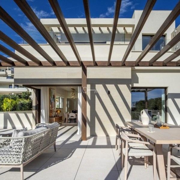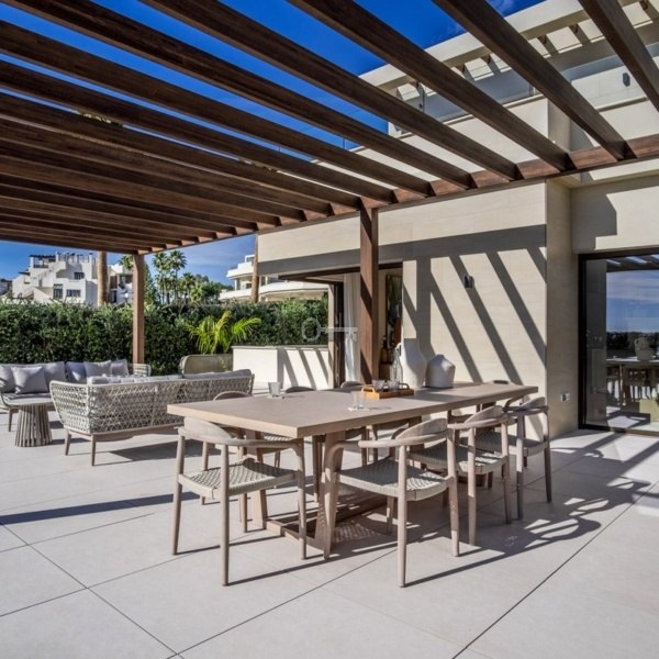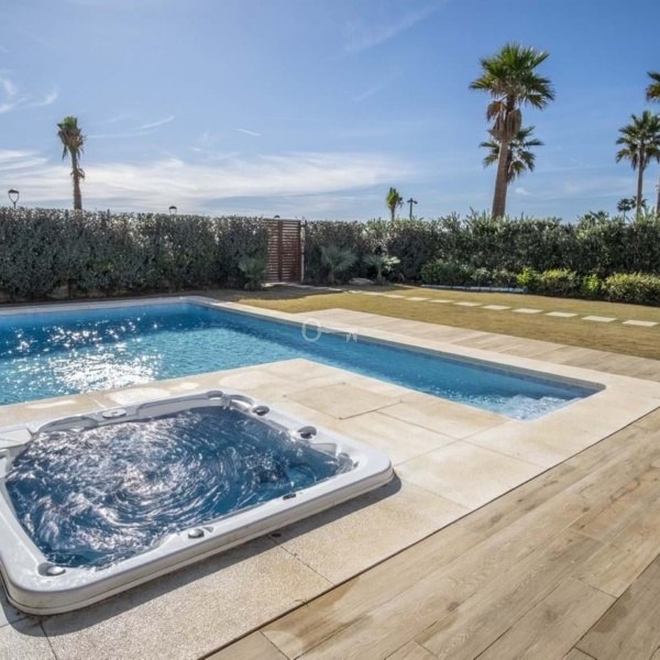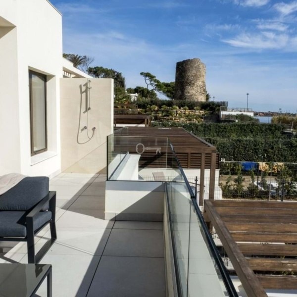 Otwarta kuchnia-salon z rozległymi przesuwanymi oknami, które znikają w ścianach i ciągłą podłogą, tworzą płynną ciągłość między wnętrzem a zewnętrzem, pozwalając w pełni docenić naturalne piękno na zewnątrz. Obszerne tarasy i prywatny ogród z basenem, jacuzzi i mini-kuchnią na świeżym powietrzu z grillem na niezapomniane spotkania.