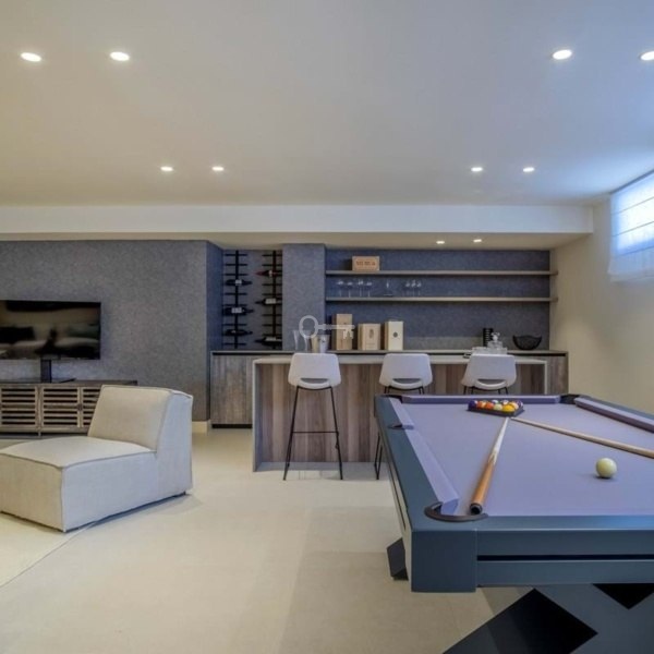 Ta willa ma 4 sypialnie, 4 łazienki, toaletę dla gości, dużą piwnicę z naturalnym światłem z pokojem do relaksu / gier, barem i siłownią.