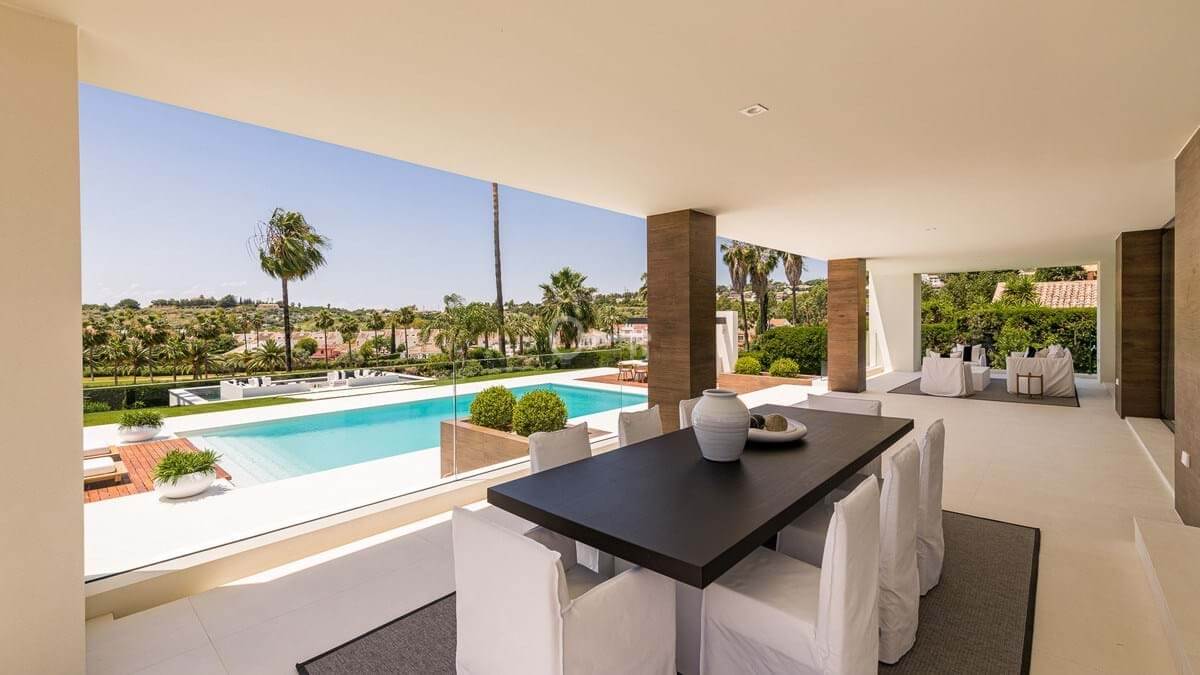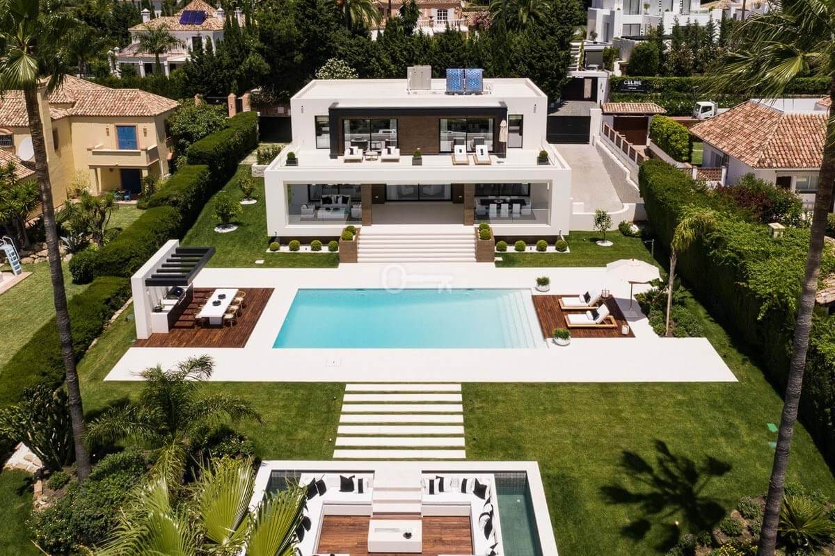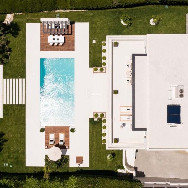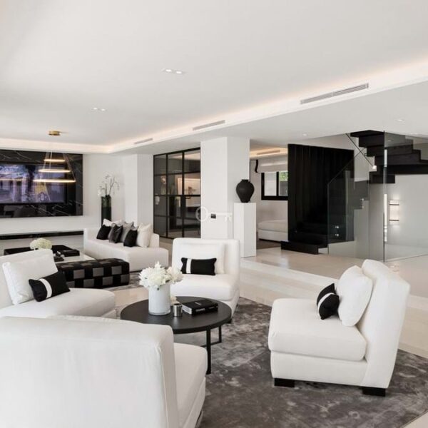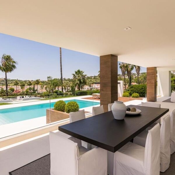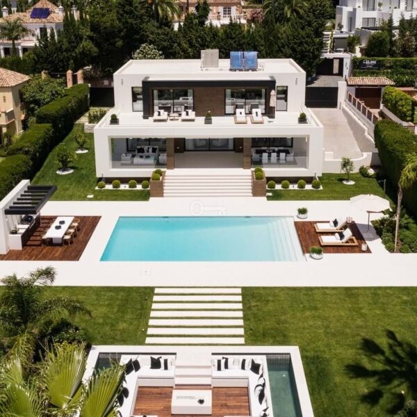 Spektakularna willa zaprojektowana przez znanego, wielokrotnie nagradzanego architekta, położona w uprzywilejowanej okolicy w samym sercu Golf Valley w Nueva Andalucía, jednej z najbardziej poszukiwanych dzielnic mieszkaniowych na Costa del Sol. Ta willa od strony południowo-zachodniej jest rozmieszczona na trzech piętrach i obejmuje na poziomie wejścia: jasny hol prowadzący do ogromnej części dziennej na otwartym planie podzielonej na trzy części wypoczynkowe, włoską designerską kuchnię w pełni wyposażoną w urządzenia Gaggenau i jadalnię. Wszystko prowadzi do przestronnej werandy, pięknych ogrodów krajobrazowych ze wspaniałą strefą relaksu z elementami wodnymi, bardzo dużym podgrzewanym basenem z zewnętrznym prysznicem i dużą ilością miejsca do opalania oraz zewnętrzną kuchnią ze sprzętem do grillowania – wszystko z przepięknym widokiem na pole golfowe. Na piętrze: główna sypialnia z ogromną elegancką szafą, łazienką i dostępem do tarasu, z którego można podziwiać widoki, nawet z wanny; kolejny apartament; 2 sypialnie dzielące łazienkę. Wszystkie sypialnie mają przestronne wbudowane dębowe szafy. Niższy poziom: 2 kolejne sypialnie; pralnia; piwniczka na wino; siłownia i kino domowe. Zbudowany zgodnie z najwyższymi specyfikacjami i wykończeniami, w tym łazienki z armaturą Dornbracht, aby wspomnieć o kilku. Cicho położony, niezakłócony, na podwyższonej działce na polu golfowym. Położony zaledwie kilka minut jazdy od renomowanego międzynarodowego college’u Aloha i Aloha, z bogatym wyborem restauracji, barów i udogodnień. Tylko 5 minut jazdy samochodem do Aloha Golf, Las Brisas Golf, La Quinta Golf, Magna Marbella Golf oraz szerokiego wyboru kortów tenisowych i padla. Zaledwie 10 minut jazdy samochodem do Puerto Banús, plaży i Marbellas Golden Mile.