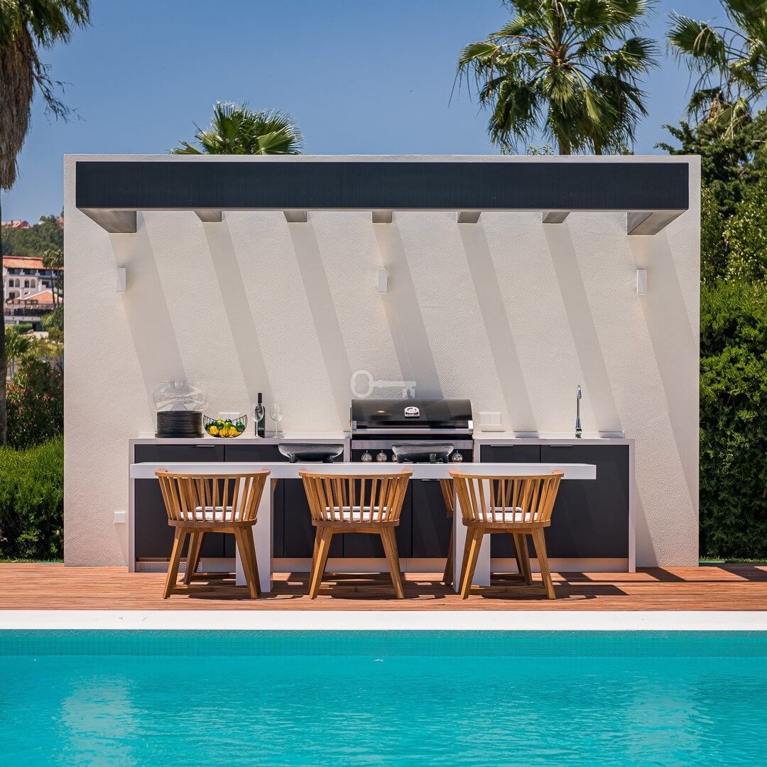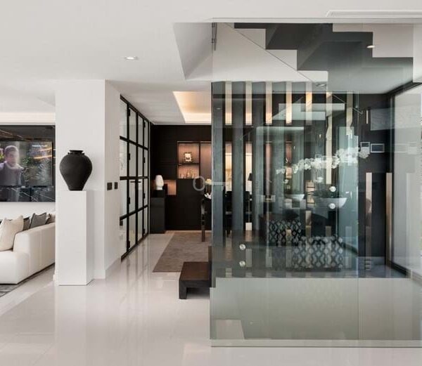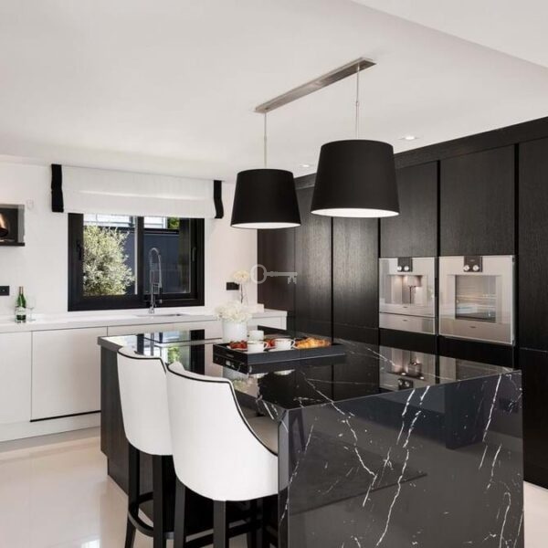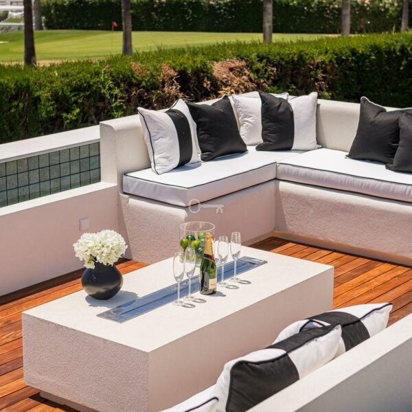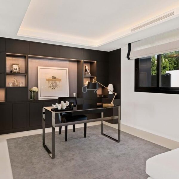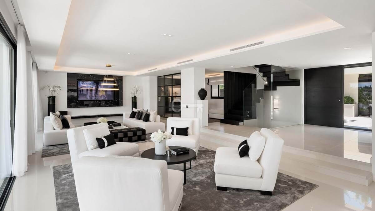 Spektakularna willa zaprojektowana przez znanego, wielokrotnie nagradzanego architekta, położona w uprzywilejowanej okolicy w samym sercu Golf Valley w Nueva Andalucía, jednej z najbardziej poszukiwanych dzielnic mieszkaniowych na Costa del Sol. Ta willa od strony południowo-zachodniej jest rozmieszczona na trzech piętrach i obejmuje na poziomie wejścia: jasny hol prowadzący do ogromnej części dziennej na otwartym planie podzielonej na trzy części wypoczynkowe, włoską designerską kuchnię w pełni wyposażoną w urządzenia Gaggenau i jadalnię. Wszystko prowadzi do przestronnej werandy, pięknych ogrodów krajobrazowych ze wspaniałą strefą relaksu z elementami wodnymi, bardzo dużym podgrzewanym basenem z zewnętrznym prysznicem i dużą ilością miejsca do opalania oraz zewnętrzną kuchnią ze sprzętem do grillowania – wszystko z przepięknym widokiem na pole golfowe. Na piętrze: główna sypialnia z ogromną elegancką szafą, łazienką i dostępem do tarasu, z którego można podziwiać widoki, nawet z wanny; kolejny apartament; 2 sypialnie dzielące łazienkę. Wszystkie sypialnie mają przestronne wbudowane dębowe szafy. Niższy poziom: 2 kolejne sypialnie; pralnia; piwniczka na wino; siłownia i kino domowe. Zbudowany zgodnie z najwyższymi specyfikacjami i wykończeniami, w tym łazienki z armaturą Dornbracht, aby wspomnieć o kilku. Cicho położony, niezakłócony, na podwyższonej działce na polu golfowym. Położony zaledwie kilka minut jazdy od renomowanego międzynarodowego college’u Aloha i Aloha, z bogatym wyborem restauracji, barów i udogodnień. Tylko 5 minut jazdy samochodem do Aloha Golf, Las Brisas Golf, La Quinta Golf, Magna Marbella Golf oraz szerokiego wyboru kortów tenisowych i padla. Zaledwie 10 minut jazdy samochodem do Puerto Banús, plaży i Marbellas Golden Mile.