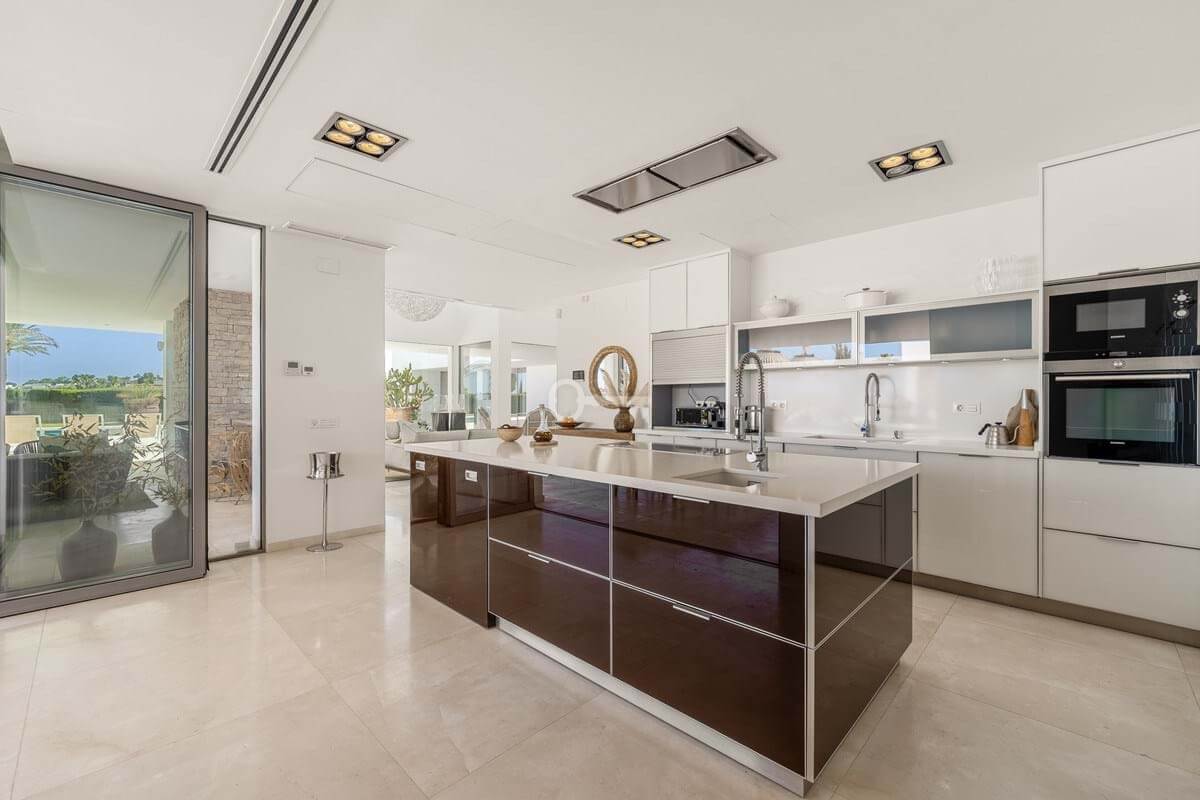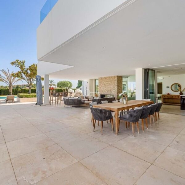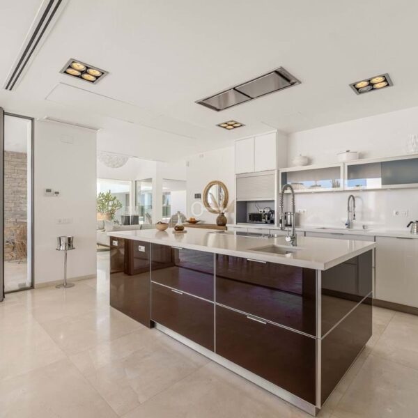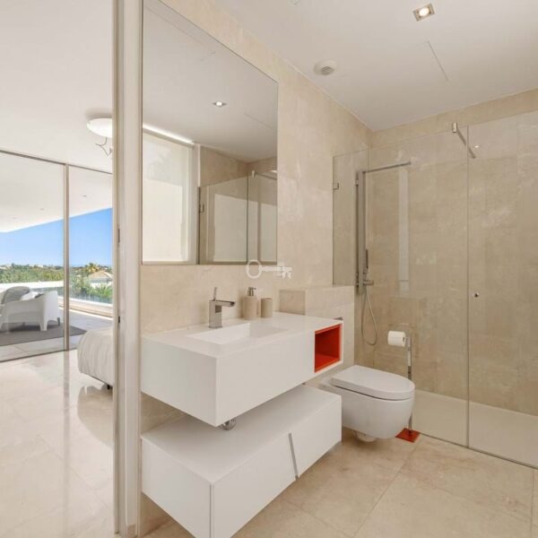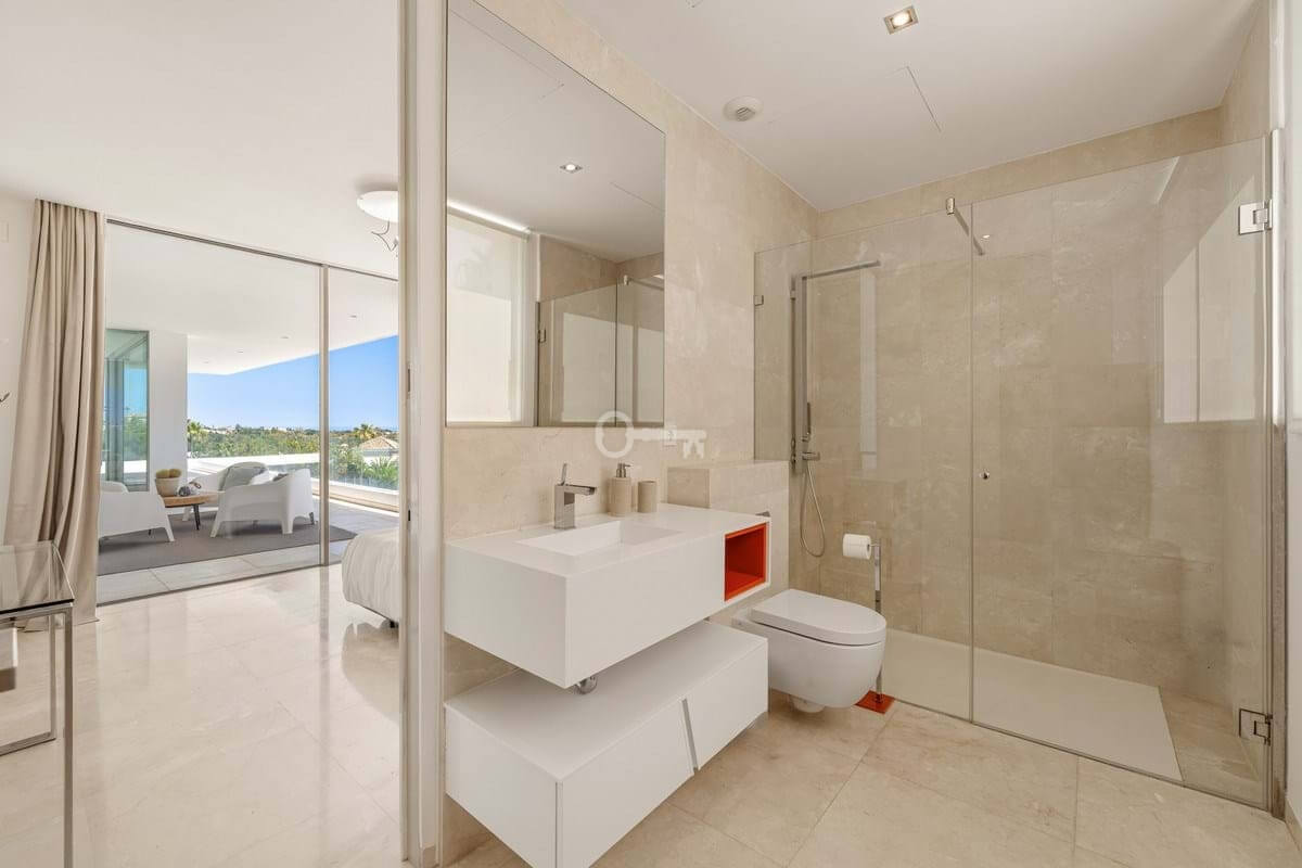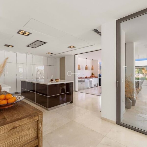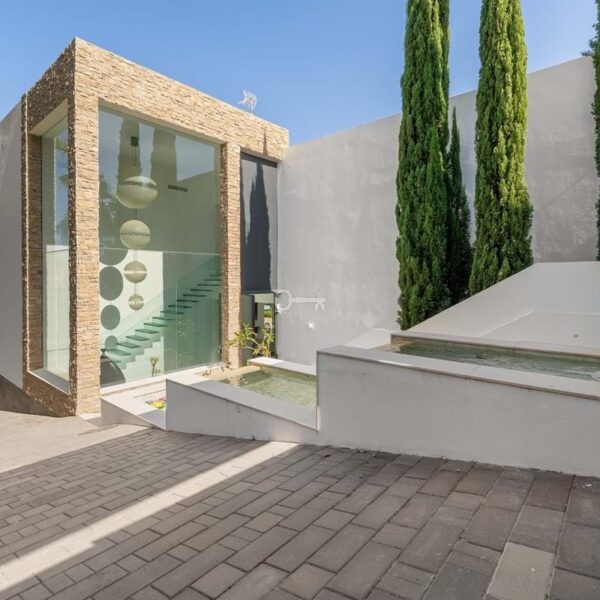 Stunning contemporary villa located in the prestigious neighbourhood of La Cerquilla, nestled in the heart of Nueva Andalucías Golf Valley. This exclusive seven bedroom residence offers exceptional privacy and breathtaking panoramic views of Marbellas iconic La Concha mountain and the Mediterranean coastline. With its prime location near top golf courses, international schools, upscale restaurants, and the vibrant Puerto Banús marina, it represents a superb investment and lifestyle opportunity. Inside, the villa features expansive interiors thoughtfully designed with natural textures and refined finishes. Soaring ceilings, elegant lighting, and a harmonious indoor-outdoor flow define the main living areas. Custom furnishings, organic materials, and curated decor elements, such as woven wall art and hand-crafted ceramics add character and warmth throughout the home. The upper level presents a tranquil, gallery-style corridor overlooking the main floor, leading to serene bedrooms with sweeping views and private terraces. At the heart of the villa is a sleek, modern kitchen equipped with premium appliances and contemporary cabinetry, flowing into a spacious glass-enclosed dining area with floor-to-ceiling windows. Outdoor living is elevated with a striking pool and jacuzzi, Balinese-style sun loungers, and a covered dining terrace complete with a fireplace and barbecue ideal for entertaining year-round. A unique highlight is the private tennis court at the foot of the garden, offering a perfect recreational space for residents.