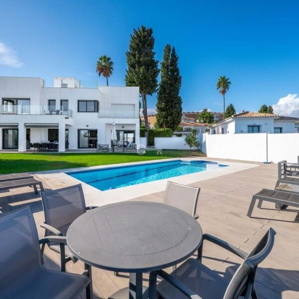 This stunning 5-bedroom en-suite villa located in one of the most sought-after areas of Nueva Andalucía, just a short stroll from the Marbella Arena and the famous La Sala venues, and within walking distance to the vibrant Puerto Banús marina, luxury boutiques, top-rated restaurants, and the beach.