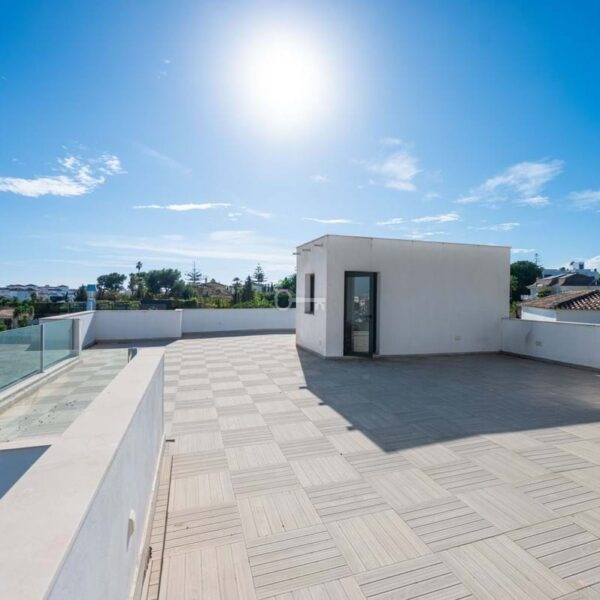 One of the highlights of this villa is its enormous rooftop solarium ,an ideal entertainment space with the potential to create a lounge area, outdoor kitchen, and jacuzzi, perfect for enjoying the beautiful Marbella sunsets.